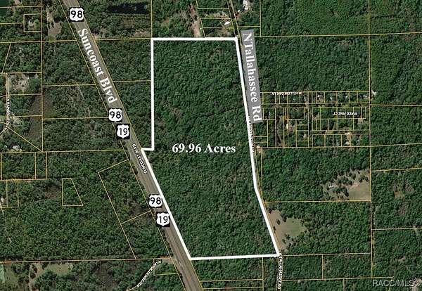 Prime 69.96 more-or-less-acre property boasts a prime location on US Highway 19/98, featuring extensive highway frontage. With an FDOT traffic count exceeding 20,000 vehicles daily on Suncoast Blvd, the property ensures excellent visibility and accessibility, offering approximately 1,450 feet of frontage and 1,025 feet of depth. Conveniently situated near Tampa General Hospital, hotels, gas stations, and restaurants, this parcel provides an ideal opportunity for various developments. Located in Crystal River, the area is renowned for its outdoor lifestyle, offering activities such as snorkeling with manatees, boating, and exploring state parks and wildlife preserves.