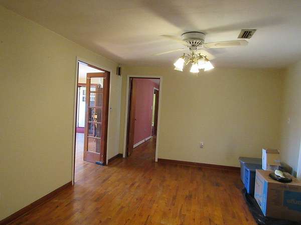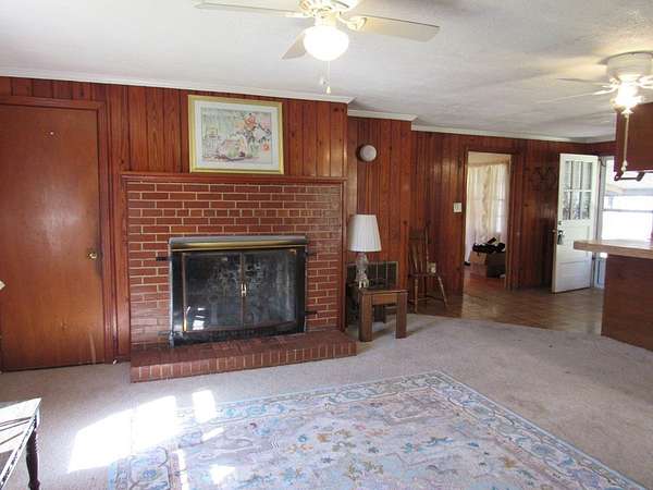 - Ceiling Fan(s), Center Hall, Fireplace, French Doors, Laundry Room, Paneling, Tub/Shower Combo, Wood