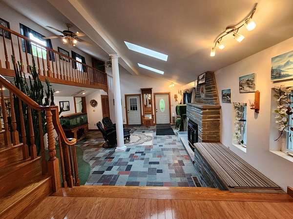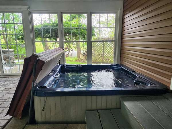 Discover a one-of-a-kind residence where sophistication meets relaxation. The extraordinary home features an indoor infinity pool and hot tub set within a four-season heated sunroom-your own private spa retreat, let the stresses of the day melt away no matter the weather. It overlooks the garden, stone Patio, wonderful to dine alfresco and so much more. Private landscaped grounds. Outdoor fireplace, if you love stone walls, cascading pools, waterfalls and private gardens you will be enchanted by the charm of this unique property. This Contemporary 4-bedroom 2 bath home, 2 car attached garage features a Great room with Stone Fireplace and slate floors. Gourmet kitchen, lots of cabinet and countertop space, excellent for entertaining. Formal Dining room, an open floor plan creates inviting space throughout. 1st floor bedroom and full bath. Large master bedroom, private balcony, full master bath, shower and spa inspired garden tub. The addition could easily be converted to in law space with private spiral staircase from the garage. Zoned radiant heating. 2 story Gazebo with stone pavers on the ground level, 2 ponds. Babbling brook, Observation deck. Covered grape vine canopy. Outstanding BNB potential or just keep it all for yourself. This is more than a home it's a healthy lifestyle.