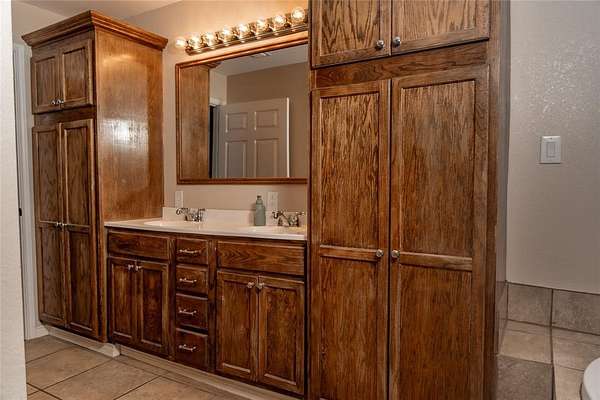 A cozy office with built-ins offers the perfect work-from-home setup, while the spacious laundry room provides ample storage and functionality. The private primary suite is a true retreat, featuring a jetted soaking tub, separate tiled shower, and a walk-in closet with built-ins.