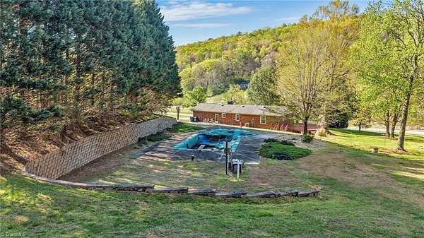 Sometimes the greatest value truly is in the location; this property is a rare find for anyone commuting to Statesville. Nestled on 2.54+/- acres of level-to-gently rolling land, this classic brick ranch offers comfort and room to enjoy the outdoors. Inside, the living area features a beautiful fireplace that creates a warm focal point for the home. The spacious kitchen/dining area provides generous counter space, a breakfast bar, and an easy flow for everyday living or entertaining. Both the primary and guest bathrooms include bidets, adding a touch of modern convenience. The home showcases gorgeous hardwood floors, and the outdoor living spaces are just as inviting. A large deck and patio face the in-ground pool, making it an ideal setting for gatherings or quiet relaxation. Additional features include a full basement with a garage door, a garage/storage building equipped with water, electricity, and a full bath, offering excellent potential for a workshop, hobby space, or pool house.