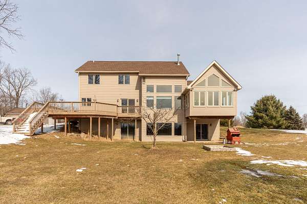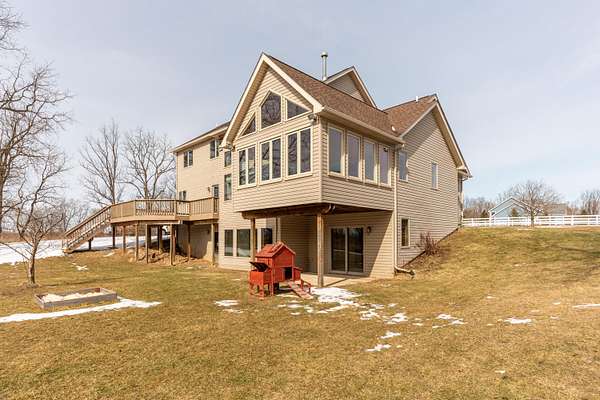 Beautiful home in a rural setting yet only a few minutes from downtown Dexter. So many features... 1st floor Master with two sided fireplace and direct access to 200sf sunroom; soaring living room; private study; large kitchen and dining with hickory cabinets and flooring; upstairs loft area plus 3 bedrooms; large wrap-around deck; large walkout basement with two 8ft door walls and picture window for lots of light; plumbed for bath. Additional 1.5car garage for workshop or storage. New roof 2024 and water heater 2023; furnace inspected and cleaned; sprinkler system; central vacuum; Champion water treatment system; RO; Radon mitigation. The lot is over 5 acres and is adjacent to many more acres of rolling hills. Horses, sheep, etc allowed. TOS already completed.