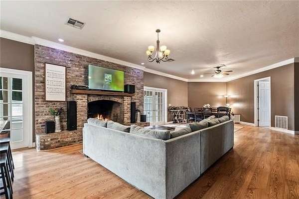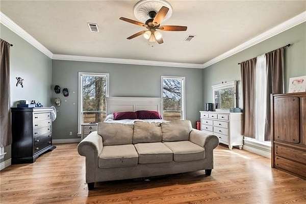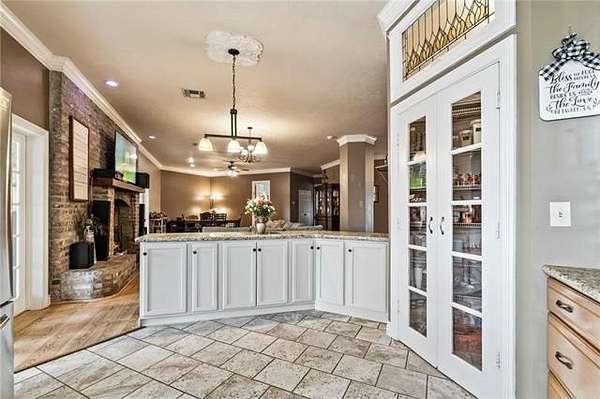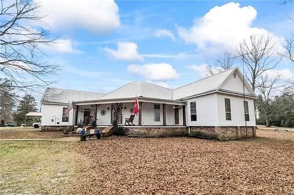 Beautiful and unique farmhouse on 7.98 acres in Franklinton, Louisiana offering peaceful country living with custom details throughout. This four bedroom, two and a half bath home features an open living concept with soaring ceilings, crown molding, and a massive custom fireplace as the focal point. The kitchen includes custom cabinetry, granite countertops, stainless steel appliances, and ample workspace. There is no carpet throughout the home for easy maintenance.