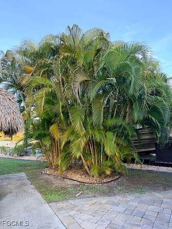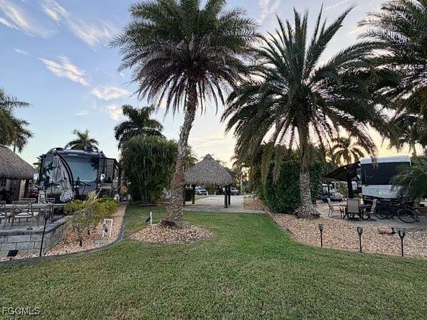 Lot 236 is a pie shaped angled lake lot that is north west facing and has 60 feet of concrete on one side and the other side of 70 feet of concrete. This lot features 2 large Eureka Palms, 1 Sylvester Palm, 1 miniature date Palm and 5 cocoplums. Relax and keep cool under your 12 x 12' Tiki Hut while enjoying a fantastic view of the lake which has twin fountains. There is an unfinished 10 x 12' Amazon shed for you to keep as storage or allow you to custom design it with your own personal touches. There is plenty of open green space that will allow you more customization as well as additional stone or other ground cover. Come check out this lake lot that is competitively priced.