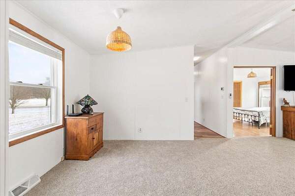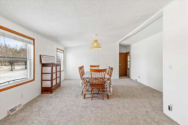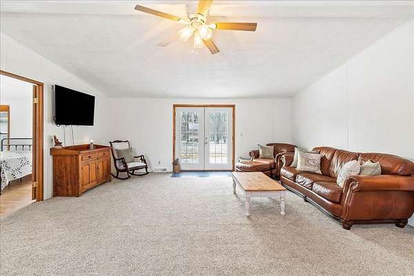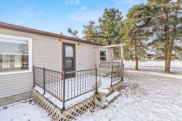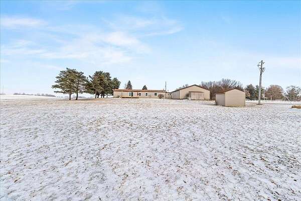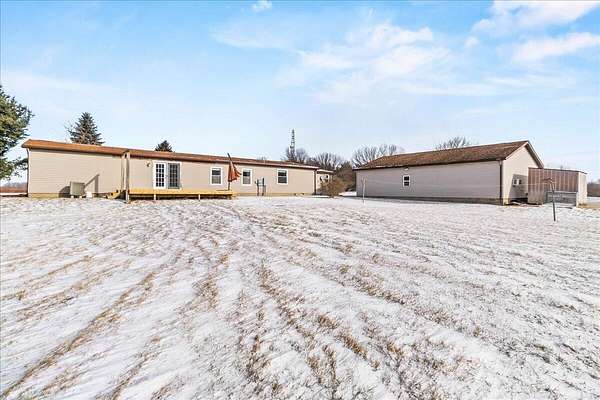 Enjoy the comfort and convenience of true one-story living on 1.52 acres with this beautifully maintained modular home on a permanent foundation. Designed for both functionality and flow, the home offers a thoughtful mix of open-concept living and defined spaces. The kitchen opens effortlessly to a generous family room and includes a walk-in pantry, while a separate living and dining area create flexible options for entertaining or everyday relaxation. The primary suite serves as a peaceful retreat, complete with a walk-in closet and a recently updated bathroom featuring dual sinks and a walk-in shower. Durable, stylish laminate flooring runs throughout all three bedrooms. Outside, the flat, expansive lot offers privacy and room to breathe, complemented by a 40x30 detached garage with a heated and cooled workshop, plus two additional storage sheds (12x12 and 8x10). Updates include, new pex plumbing, new flooring, fresh paint, a whole home water filtration system, roof (2020) and so much more! This property combines space, versatility, and a convenient location-perfect for work, play, and everything in between..