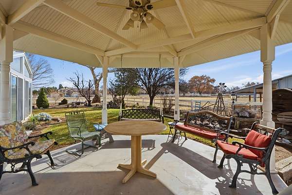 Quality Country Living at its best in quiet seclusion with beautiful mountain views. 2.9 acre mini farm is fully fenced and is located in the pristine Umbrage Mini Farms. MRGCD irrigation rights with underground ditch irrigation, a private well; the house is on city water and natural gas. The home is beautifully appointed with hardwood floors, lots of natural light throughout. Lanai sunroom adjoins the kitchen with total views of the beautiful garden and gazebo, bringing the outdoors in! 2 car attached garage at the house. 40'x50' Barn has 14' walls, an RV door, and includes 8,000 lb car lift and air compressor. Also attached to Barn is a 30' x 24' garage with double doors. Complete with a 50'x30' equipment shed and a Chicken Coop waiting for your chicks!