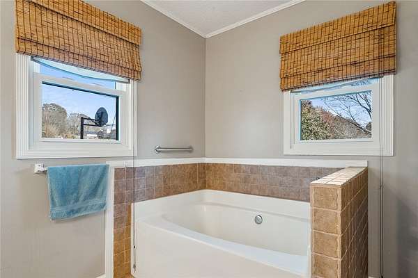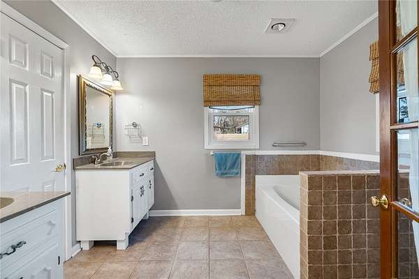 - Bath In Primary Bedroom, Bookcases, Built In Features, Ceiling Fans, Dual Sinks, Garden Tub Roman Tub, Laminate Countertop, Main Level Primary, Pull Down Attic Stairs, Separate Shower, Smooth Ceilings, Walk In Closets