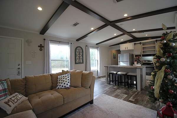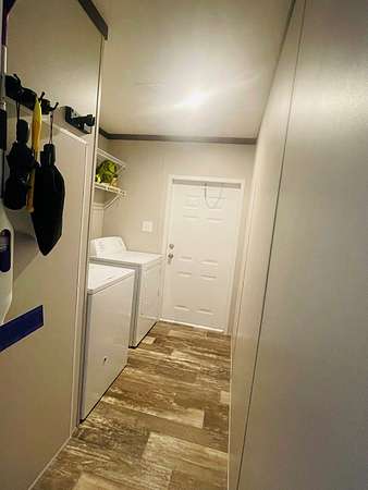 Tucked away on 9.73 this private retreat offers the perfect retreat. Surrounded by beautiful wooded acreage. The property is graced with stunning mature oak trees The home is completely secluded, not visible from the main road. The property features a 30 X 60 metal Workshop, ideal for equipment, hobbies, or a home business, along with an additional pump shed 8 X 10 for added storage and functionality. Inside, you'll find a four-year-old single wide home that has been meticulously cared for and is exceptionally clean. The open living room and kitchen floor plan creates a bright, welcoming space for everyday living and entertaining. The home offer three comfortable bedrooms, two full bathrooms, and a dedicated laundry room. all designed with comfort and practicality in mind. If you're searching for privacy, space, and a move-in-ready home surrounded by nature, this property is a rare find. Call today to schedule your private showing.
