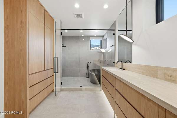 Nestled in Park City's coveted Old Ranch Road district, this luxury estate offers an unparalleled blend of modern design, natural beauty, and convenience. Designed for wellness and entertainment, the home features a state-of-the-art wellness area with a sauna, cold plunge, yoga space, and rubber flooring. Wine enthusiasts will appreciate the 500+ bottle wine cellar with a dedicated tasting area. Floor-to-ceiling paneled slider doors lead to seamless indoor-outdoor living with a private swimming pool, built-in hot tub, pickleball court, walking paths, and tubing hill. Two outdoor fireplaces provide the perfect setting to enjoy the open space and stunning sunsets. The heated courtyard and five-car heated garage, complete with epoxy floors and a fully equipped dog bath, ensure every detail is thoughtfully considered. Technology integrates effortlessly with a Control 4 smart system and electric auto window coverings throughout. Ideally located, this estate is minutes from world-class ski resorts, the trails of Round Valley, and the charming Willow Creek Park. Heber's FBO and Salt Lake City International Airport are both easily accessible, providing convenience for private and commercial travelers alike. This home backs up to the majestic Round Valley - offering 2,200 acres of open space. Whether enjoying the vibrant culture of nearby Main Street or the tranquility of your own expansive property, this home offers the best of Park City living.