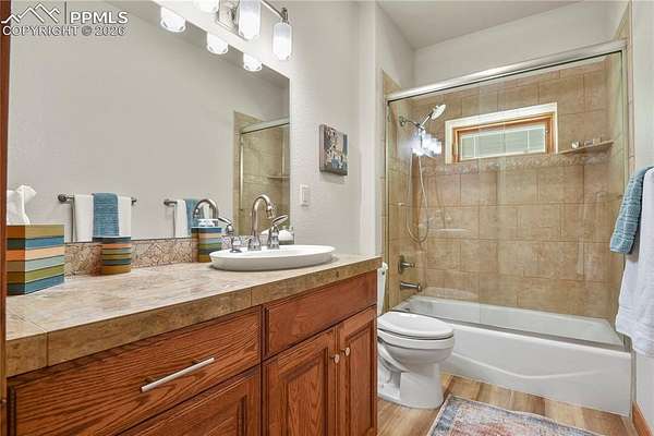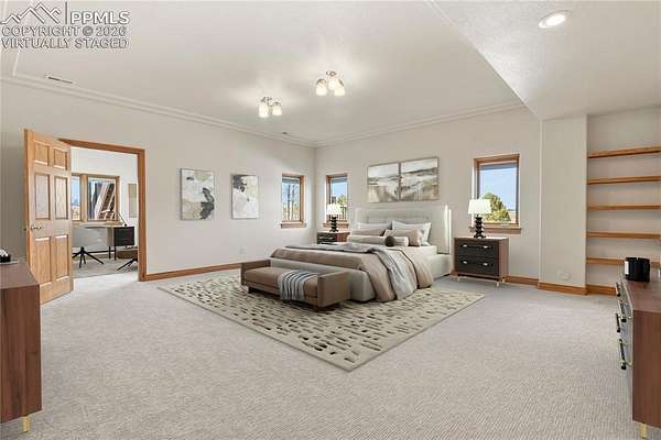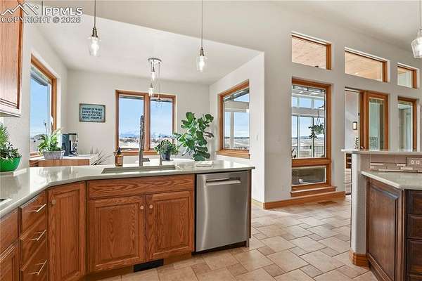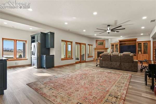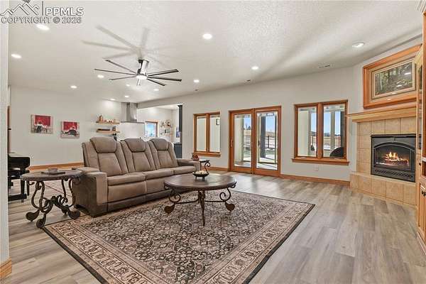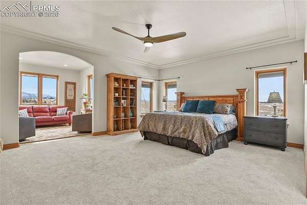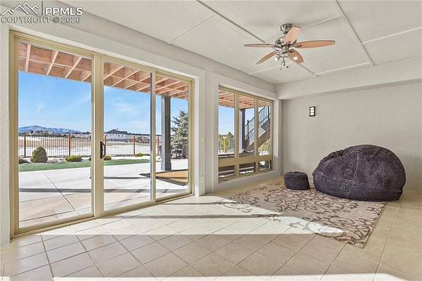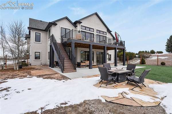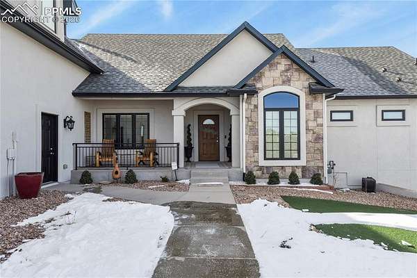 Welcome home! This stunning property checks all the boxes and has been lovingly cared for and thoughtfully updated over the past several years. Begin your tour on the exterior of the home starting with a 4-car garage with new insulated doors and openers, epoxy coated floor and EV charger. New roof with Class 4 shingles, new gutters, entirely new exterior paint, an incredible expansive deck, flagstone patio and fencing with stunning Pikes Peak views. The interior of the home was not overlooked! New paint, new carpet, new LVP flooring in sunroom, stairs and lower level great room. Gorgeous new lower level full kitchen with stone tops including full size fridge, dishwasher, cooktop with vent hood and wall ovens. New lighting in the majority of the home including ceiling fans, bath vanity lights and multiple LED can lights. Mechanical updates include new water heater 2020, new 15 seer AC and steam humidifier in 2023. This is a great home for multi-generational living with 2 huge en-suites including 3 hard to find main level bedrooms, a media/private suite with bath over the garage and 2 full kitchens. All beautifully set on 5 acres with gorgeous sunrise, sunset and entire front range views. See addendum for detailed list of updates, upgrades and renovations!