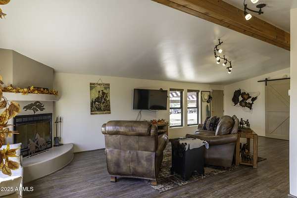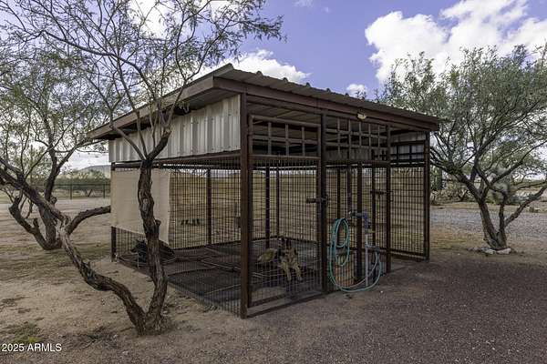 Welcome to your winter roping hangout! This well-maintained property is ready for you to enjoy.The entrance has a unique design and an electric gate. Home has been remodeled, with updates, and comes with new appliances. Enjoy a detached 2 car garage with built in storage and solar lights. Two huge turn outs (99' x 234) 10x18 shades and water. Barn with 2 14'x30' pens,16' drive thru tailer parking, 9'8'' Clearence. 10x20 hay storage and 10x10 tack room with a roll up door, shaded 10' x 54' patio for saddling, all this under a 40'x54' roof, with water and electric. Two large dog kennel's with misters, cover and water. 2 RV hookups, one with sewer other water and power. Plenty of room for large trailers to get turned around. This property could have an arena, and room for more pens or shop. Highest elevation property in Forepaugh, no flooding issues.