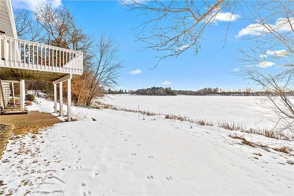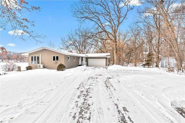Set on almost 4.7 private acres with an incredible 200+ feet of level lakeshore on Chain Lake. This exceptional 4-bedroom, 2-bath rambler offers the perfect blend of space, scenery, and serenity - just minutes from town and freeway access. Tucked at the end of a dead-end road and surrounded by mature trees, this property delivers true privacy with panoramic, west-facing lake views and unforgettable sunsets.