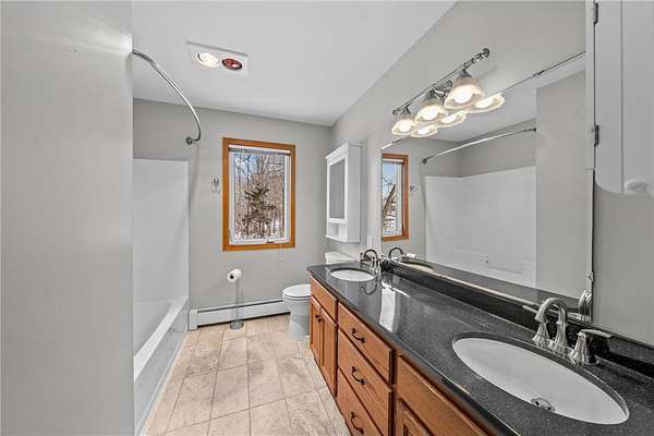 Inside this beautiful home, you’ll find generous room sizes, abundant natural light and thoughtful upgrades and updates throughout. The updated kitchen features granite countertops, solid oak floors, stainless steel appliances, and flows seamlessly into the living spaces, all framed by expansive windows overlooking the lake. Cozy up to two fireplaces - a striking stone-wall gas fireplace and a high-efficiency wood-burning fireplace, perfect for year-round comfort. Solid 6-panel doors and custom closet organization systems in every bedroom add both quality and functionality.