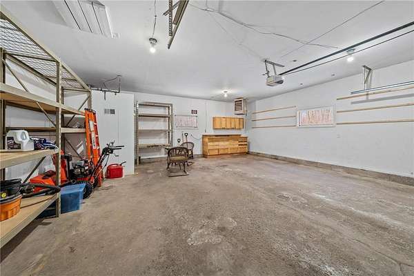 Outdoor living is just as impressive with a nice sized deck with convenient and easy to maintain deck tile flooring - ideal for soaking in the views and a walkout lower-level patio that leads right to the shoreline. Storage truly abounds, including an oversized, heated and finished 2-stall garage complete with a gas heater, heavy-duty shelving, and a workbench with cabinets.