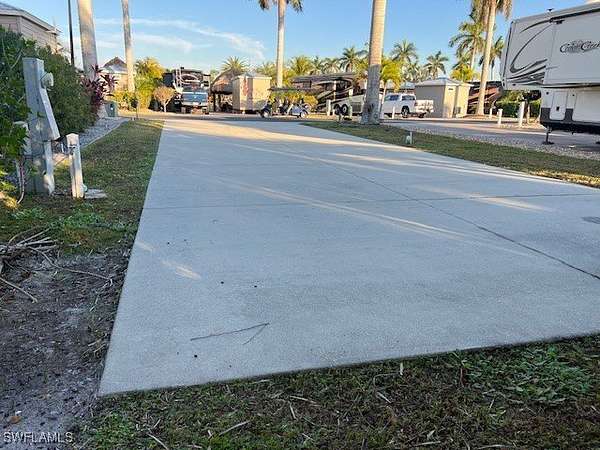 Lot 284 offers a west facing back in Concrete lot and has a blank canvas awaiting your special touch. Do you want a tiki hut or a gazebo and Amazon shed? You can update the inside of the shed and have a shower, toilet, sink and Mini-split or just use it for storage. Do you prefer an outdoor kitchen or how about some special Colusa, Sylvester Palms, or additional vegetation? Do you want whole lot irrigated or partial irrigation? Finish your side and rear patio with pavers for a private paved area. This lot is right around the corner from the clubhouse, the pool, the gym, Pickleball courts, shuffleboard courts, tennis court or bocce ball. On Tuesday you can let the bags fly playing a round Robin of Cornhole competition. We do have a full-time professional Activity Director, food trucks are available from time to time, music under the tiki, music in our parking lot, some karaoke and loads of other fun are a part of this amazing resort. Come and enjoy our activities in this five star resort. Yes this is a great price of $149,900. Please call for more information.