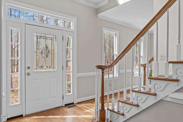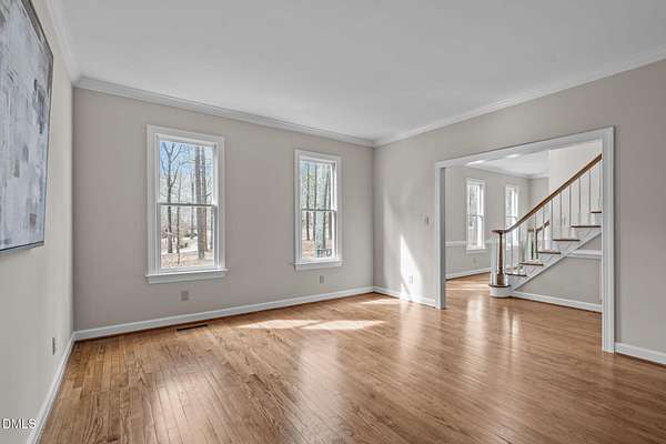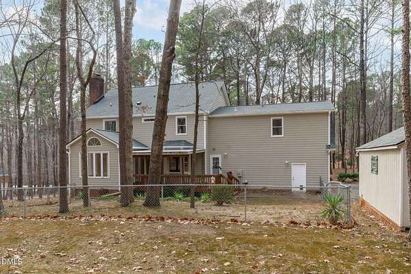 Room to breathe and space to grow in North Raleigh- nestled on a 1.67-acre wooded lot with no HOA, 5222 Swisswood offers over 3,100 square feet of thoughtfully designed living space. The kitchen seamlessly opens to the family room with a cozy gas fireplace, creating the perfect setting for everyday living and entertaining. A sunroom with vaulted ceiling and abundant natural light provides a bright, inviting retreat year-round. The main level also features a full bathroom and laundry room for added convenience. The secondary back staircase leads to a spacious bonus room -- ideal for a media room, home office, or flexible living space. The primary suite showcases a vaulted ceiling, adding to its spacious feel. Step outside to a covered deck with a durable tin roof, perfectly suited for year-round outdoor enjoyment. A fenced section of the backyard offers convenience, while the remaining acreage is rich with mature hardwoods, providing a peaceful natural setting. A detached 12x20 shed with electricity adds valuable space for storage, hobbies, or a workshop. New carpet in the bedrooms and on the stairs, and fresh paint in select first-floor rooms and the primary bedroom offers a refreshed and move-in ready feel. Additional highlights include stainless steel kitchen appliances (less than five years old), roof (2019), gas water heater (2024), and the walk-in crawlspace is equipped with a vapor barrier, dehumidifier (less than five years old), and water softener. Living at 5222 Swisswood offers convenient access to major highways, parks, outdoor recreation, shopping, dining, and popular local destinations--while still enjoying a quiet residential setting.
