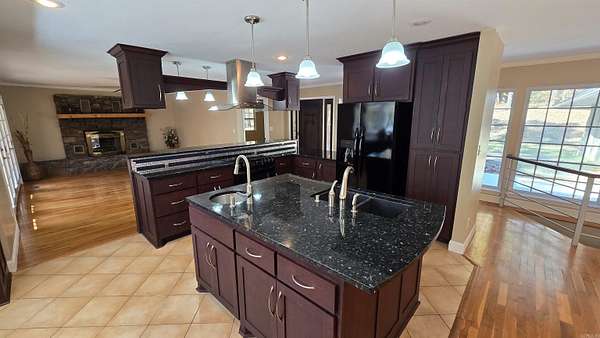 Peaceful Country Living on 2 Unrestricted Acres,One of the best-priced homes available, this spacious 5 bedroom, 3 bath home offers two living areas and plenty of room for family, guests, or entertaining. Inside you’ll find real wood floors, granite countertops, new kitchen appliances, and two beautiful wood-burning stone fireplaces that add warmth and charm throughout the home. The main level features a large master suite along with three additional bedrooms and a full bath on the opposite side for added privacy. The kitchen includes a new refrigerator with matching black appliances and overlooks a peaceful country setting with a wet-weather creek feeding a pond at the edge of the property. Step outside through two sets of French doors onto a spacious wooden deck that stretches across nearly the entire back of the home, perfect for relaxing, entertaining, or watching the sunset over the pond. Downstairs offers even more living space with a large open family room, a fifth bedroom, and a third full bath with a jacuzzi tub. Bathrooms throughout feature tile flooring, walk-in showers, and jacuzzi tubs for added comfort. This property truly combines space, comfort, and country charm.