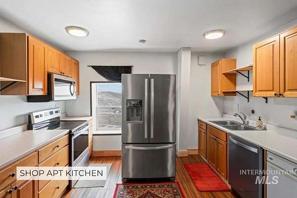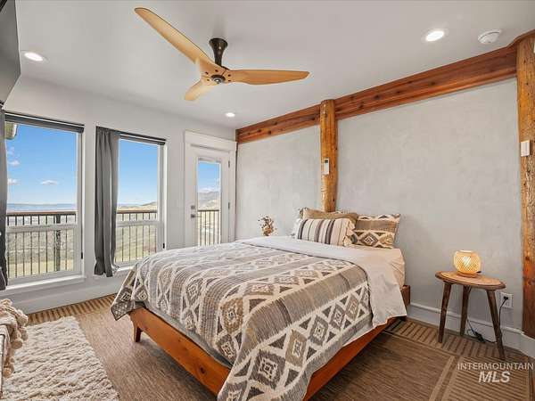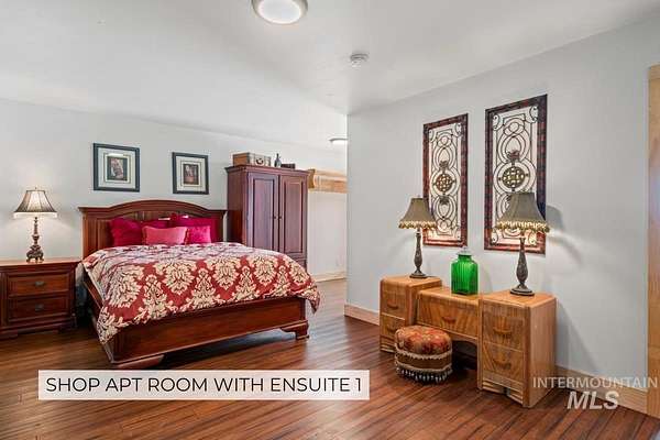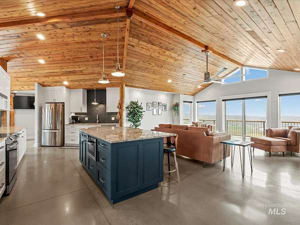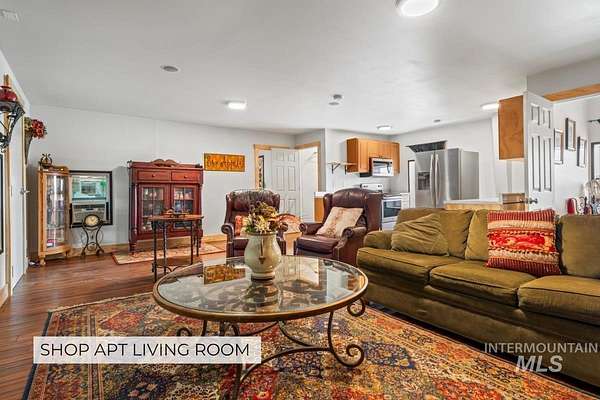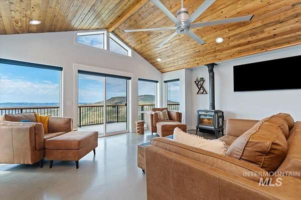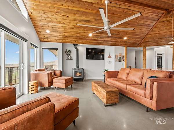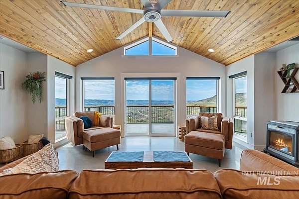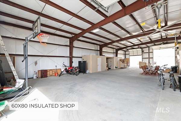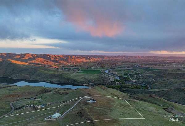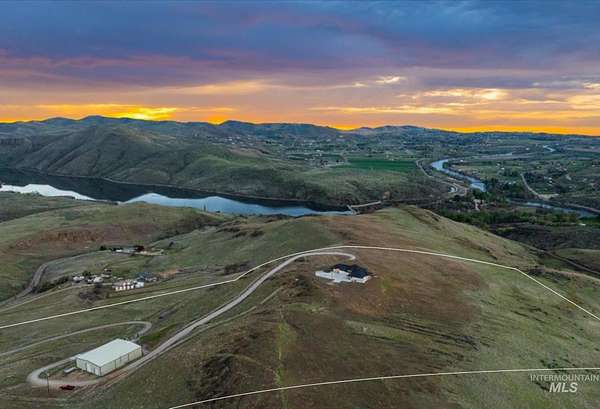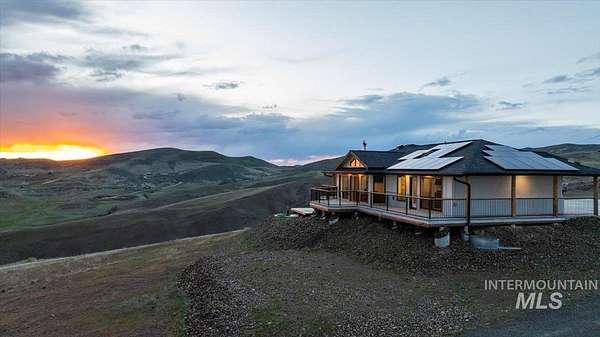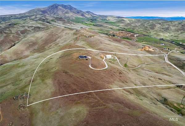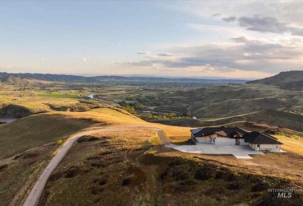Discover private, sustainable living while overlooking the Payette River & all of Emmett Valley. This custom-built straw bale home by EarthCraft Design Build offers a perfect blend of eco-friendly materials and cutting-edge green building science. Perched on 40 acres at the base of Squaw Butte, the 3 bed, 2.5 bath home boasts exceptional energy efficiency with locally sourced straw bale insulation, natural plasters, and passive solar design. Thoughtfully sited to enhance comfort year-round, this home is designed to reduce energy use while maximizing natural beauty. With reclaimed wood, non-toxic finishes, and breathability, this property connects you to nature in a way few homes can. The 60x80 shop with wood stove offers a 2 bed, 2.5 bath apartment w/ kitchen & living room as well as plenty of extra space for your RV, boat, toys & more! This one of a kind Idaho Gem offers views of Black Canyon Reservoir, Freezeout Hill and Emmett's "Valley of Plenty" with multi-generational or short term rental opportunities!