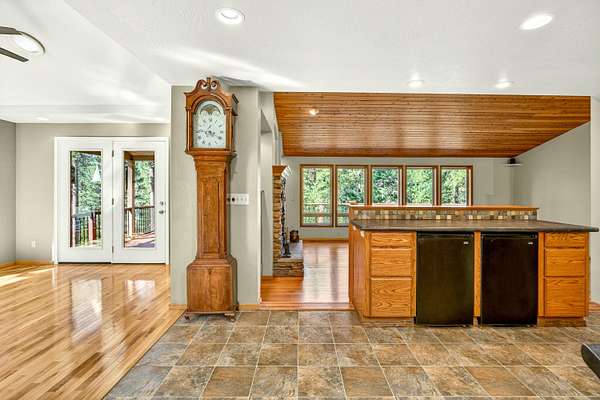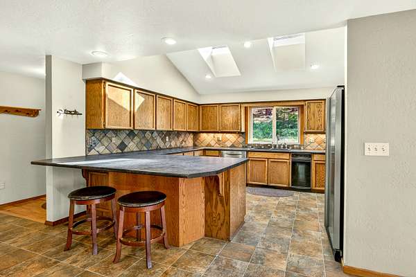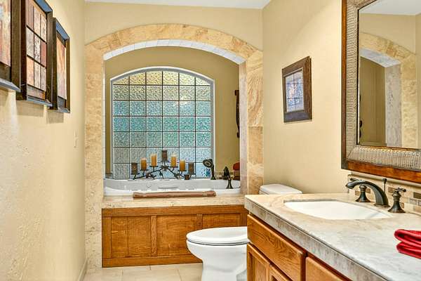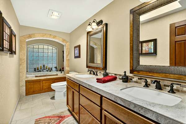 - Breakfast Bar, Built-In Features, Ceiling Fan(s), Double Vanity, Dry Bar, Enclosed Toilet(s), Fiberglass Stall Shower, Laminate Counters, Linen Closet, Open Floorplan, Pantry, Shower/Tub Combo, Soaking Tub, Tile Counters, Vaulted Ceiling(s), Walk-In Closet(s), Wired For Sound