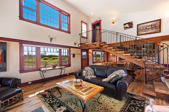 The main homesite includes a three-car detached carport, a separate log-sided office that can also be used as an additional living area, a large horse barn with several stalls, a tack room, a shop area, adjoining fenced paddocks and pastures, a huge hobby barn that includes a shop area, paint booth, pet bathing area, car storage bays, extra storage, and a huge second-story playroom. But wait, it doesn't stop here! Three additional homes of superior quality and character make each one an experience: additional shop, storage, historic barns, and an indoor riding arena!
