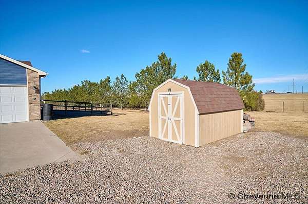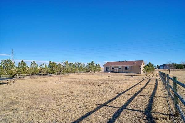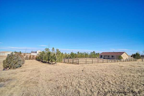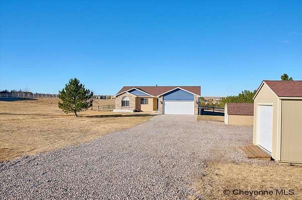 This wonderful ranch style home in Bison Crossing is in great condition on 2.62 acres with over 75 mature trees, including a fenced half-acre - perfect for pets, play or organic gardening. This home is warm and inviting with 5 bedrooms, 3 bathrooms, 2-car garage and room for RV parking with potential for a future outbuilding. The main level has a kitchen, dining, living room, 3 bedrooms, 2 bathrooms and laundry. The finished basement offers a large family room, 2 bedrooms and bathroom. Conveniently close to town yet far enough away to enjoy wide - open views, enjoy wildlife such as antelope and a neighborhood hawk and breathtaking Cheyenne sunsets, this location will be very enticing for Colorado commuters. Call today to arrange for a personal viewing of this remarkable home.