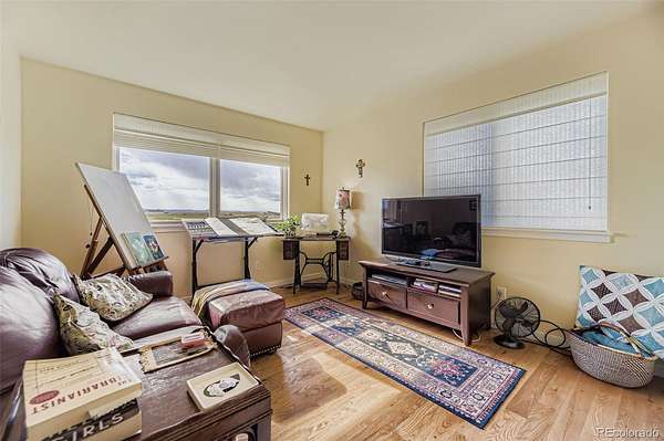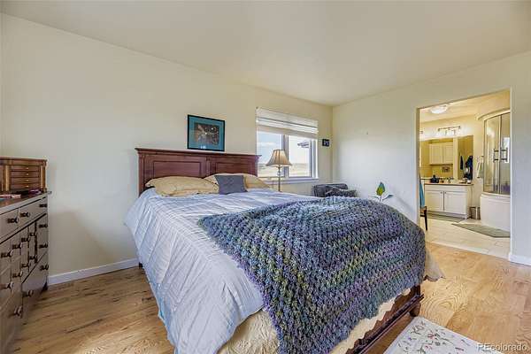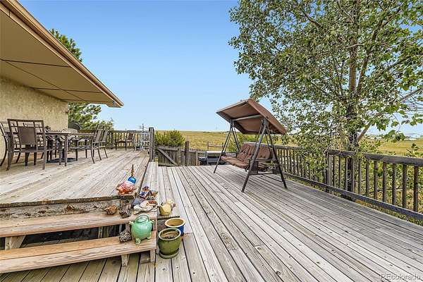 This bucolic 40 acre property offers endless possibilities and sweeping Front Range & Pikes Peak views. Bring your horses, critters, gardening tools and recreation of all kinds. The property includes a large outbuilding with multiple stalls and fenced pasture. Move indoors to find an open, sun filled floor plan with gleaming hardwood floors on the main level and bamboo flooring at the lower level. Get cooking in the beautifully remodeled kitchen with granite counters, stainless steel appliances, and huge apron front sink with the option to dine alfresco on the expansive back deck. Relax and recharge in your Primary bedroom with a spa-like on suite bath. This is your own tranquil oasis with private well, septic and super efficient geo-thermal heating and cooling system. Follow your wanderlust on miles of trails and to nearby park settings or take a short trip over to the excitement of Denver or Colorado Springs.