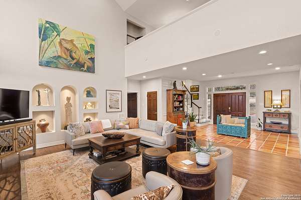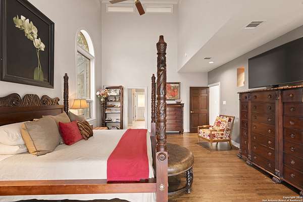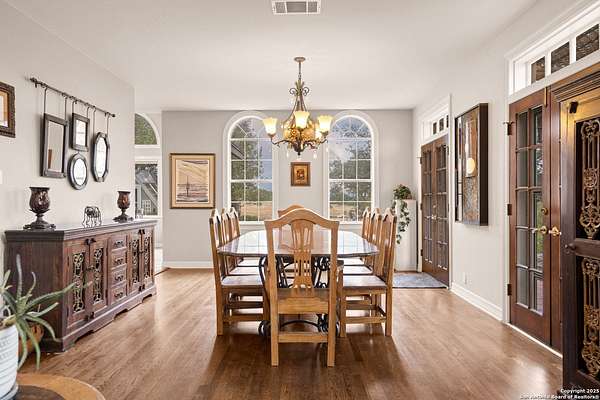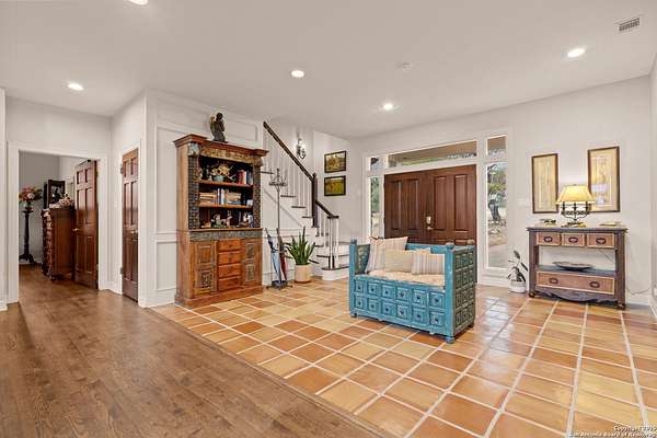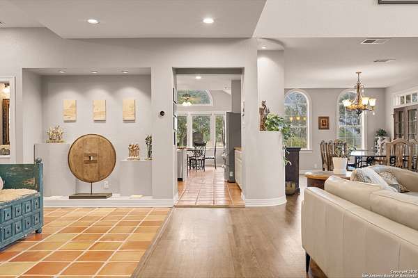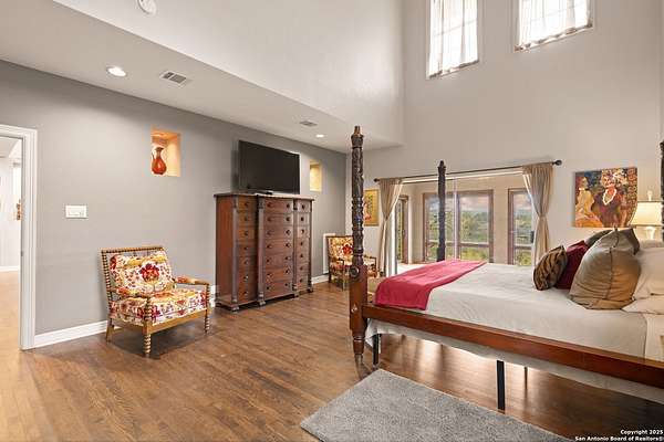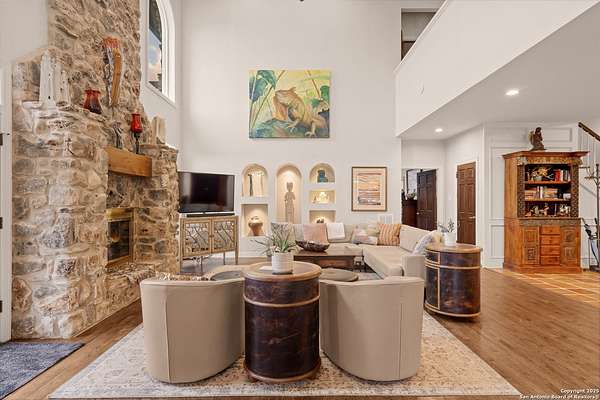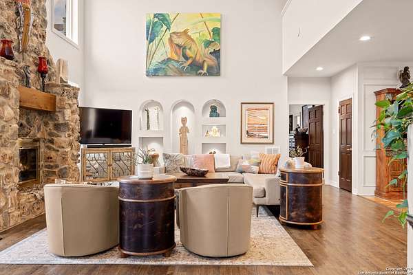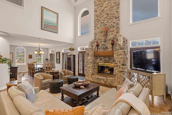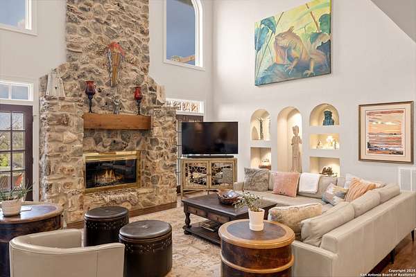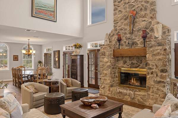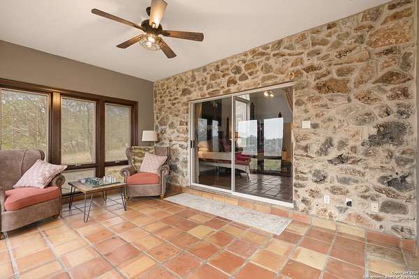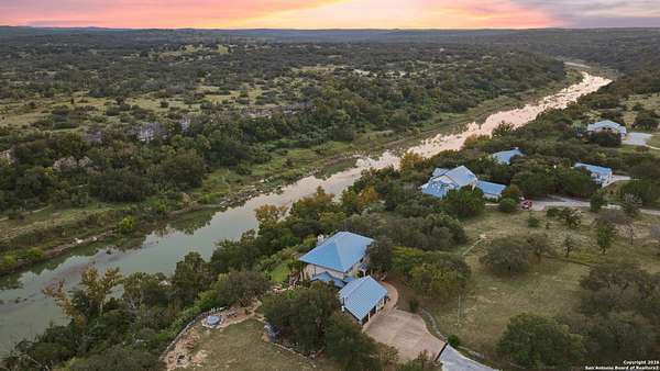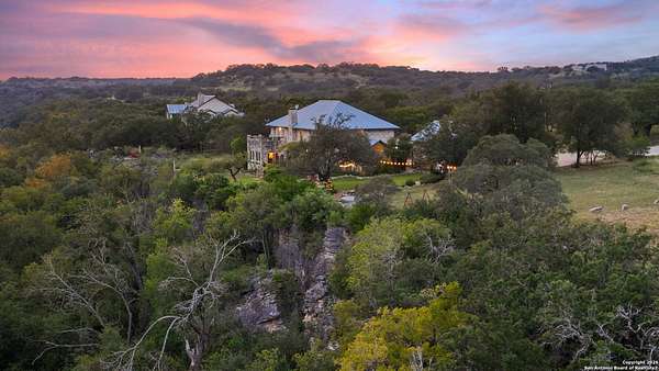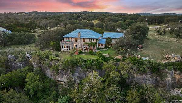 Perched on a limestone bluff above the Pedernales River, this 2.8-acre estate offers rare seclusion, year-round water, and timeless Hill Country architecture just 45 minutes from Austin and minutes from Lakeway, Bee Cave, and the Hill Country Galleria. The 4,549 SF villa is clad in native, uncut Texas stone with a standing seam metal roof and is secured behind two private gates. This stretch of the Pedernales has historically maintained water levels even during extreme drought and provides approximately 200 feet of direct spring-fed frontage. A metal stairway leads down to a private beached area ideal for fishing, kayaking, and canoeing, with abundant wildlife and long-range canyon sunsets surrounding the property. Inside, the home features vaulted ceilings, arched doorways, terracotta tile floors, granite countertops, a grand living room with a wood-burning fireplace, a spacious kitchen and breakfast area, and a primary suite with a private sunroom and terrace. The upstairs guest wing includes three bedrooms, balconies overlooking the river canyon, and a lofted sitting area. A detached garage includes a 1-bed/1-bath apartment above for guests or additional income. Well and septic are in place. This offering includes only the villa on approximately 2.8 acres. Additional land, totaling approximately 37.3 acres, is available for purchase and includes improvements such as three cabins (one site-built), an outdoor horse arena, barn, stock tank, equipment shed, and greenhouse. If the full tract is purchased together, the land can remain completely unrestricted, offering exceptional flexibility for a private compound, equestrian or recreational ranch, wellness retreat, or long-term investment. Seller is open to subdividing and may offer seller financing.