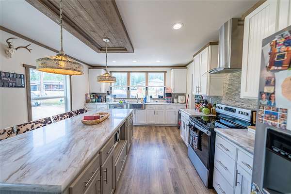 Discover the promise of Montana living with 50+ acres of pristine horse property. This 2022 manufactured home presents a unique opportunity to embrace a comfortable and spacious lifestyle. With an open living plan and spacious deck, this home is sure to provide privacy as well as beautiful views. The second home is a 2023 manufactured home with an open floor plan and great entertaining space; live in one and use the other as a great investment opportunity or for visiting family. The two-car garage provides sheltered parking and storage, as well as the newly constructed barn to house your animals. This land is ready-to-go, but offers additional building opportunities at higher elevations on the property, accessible through the road that tours through the upper part of the acreage. Enjoy privacy, views and endless potential with this true Montana dream property. Property comes with a tractor, all horse panels, and portable generator.