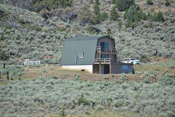 If you're looking for a special place, with extreme privacy and nothing but nature surrounding you, here it is! 960 acres of mostly native range land with a charming 1392 sf ft. 2 story chalet cabin tucked up against the hillside, capturing amazing views of the valley and mountain range. This peaceful cabin sits within 400 acres on the south side of Grasshopper Road. Fully fenced for cattle grazing. There are several springs on the property, along with two seasonal ponds. These 400 acres can handle about 35 pair from April to November, weather permitting. The meadow area appears to have been dry land farmed in the past. There is a gravel road to the cabin, weaving its way along the outskirts of the meadow. CABIN: You enter the main floor thru a convenient mud room, then into an open space with living, dining and kitchen area. A wall of windows and glass slider opening to open deck capturing the views. Perfect for morning coffee or a refreshing evening beverage watching the star lit skies. The horseshoe kitchen features a double oven, gas cooktop, refrigerator and microwave with nice counter space. One bedroom and one bath are also located on the main floor. The second level has a unique open bath/bedroom concept with area for family room or office, again with wonderful windows and glass slider opening to upper balcony with sweeping views. Luxury waterproof vinyl flooring throughout home, other than stairs. The basement is a delightful surprise and is not included in the square footage of the home. Large open space with concrete floor. Washer, dryer and water heater are located here. A side door opens to carport under deck. The water well is located in a small building just down from the cabin. Historically, the water has never been filtered and is still that way today, fresh from the well! There is a metal storage building that housed the generator before power was brought in. Power is provided by Surprise Valley Electric Coop with the lowest rates in Northern California.