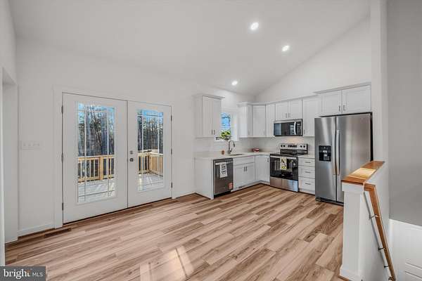 TO BE BUILT! This custom-built residence boasts over 1,250+ square feet of finished living space, offering an ideal blend of functionality and luxury. The open floor plan features a cathedral ceiling in the kitchen, dining, and living areas, complemented by luxury vinyl plank flooring throughout. Additional amenities include 9-foot ceilings, ceiling fans, wood shelving in closets, and heating and air returns in each room. The property comprises 3 bedrooms, including a primary bedroom with an attached bathroom, walk-in closet, as well as a 5-foot walk-in shower. Two full baths. The kitchen is equipped with quartz countertops and stainless steel appliances, and a dining area leads out to the 12x12 rear deck. An attached garage opens into the laundry room/mud room/pantry, which includes cabinets, quartz countertops, and a sink. The property also features a full, unfinished walk-out basement with rough-in plumbing for a potential third bathroom. There is amble room to finish the basement for additional living space or it makes a great storage area. Built with 2x6 exterior walls for enhanced energy efficiency, this home is situated on 3.48 acres, accessible by sidewalk leading to the 6x16 covered front porch.