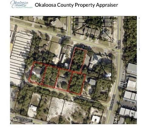 Est $13,328/moInvestment Opportunity ~ Selling five contiguous parcels and sold as Vacant Land in Destin located in a residential neighborhood, of which two parcels have structures-one of which is 523 Sea Hills Dr. with a single-family home with pool built in 1977, and the other 527 Sea Hills Dr. with a single-family built in 1965. The other 3 parcels are vacant. Parcels zoned currently for residential use -zoning classification ROI-VR (Residential Office, Institutional). Buyers to do due diligence and verify all dimensions