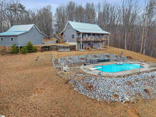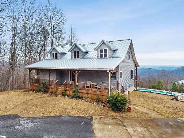 Here’s your fully polished, MLS-friendly, luxe version—clean, elevated, and irresistibly show-worthy: ? Tucked into the foothills of the Blue Ridge Mountains, 523 Upper Springs Road offers a rare blend of privacy, long-range views, and thoughtful updates in a peaceful, nature-rich setting just minutes from the charm and growth of downtown Pickens. You might almost miss the drive as you pass—but that’s part of the magic. A gently rising, fully accessible approach (no AWD required) crests before revealing a stunning descent into the property, where the landscape opens to sweeping mountain views and a breathtaking first glimpse of the home. This beautifully refreshed mountain retreat features 4 bedrooms + loft, 2 spacious living areas, 2 bathrooms, and approximately 2,940 square feet designed to connect seamlessly with its surroundings. A classic cabin exterior—anchored by a new 50-year metal roof—sets the tone, while expansive covered porches across both rear levels and the front of the home create effortless spaces to enjoy fresh mountain air, seasonal changes, and abundant wildlife. Inside, soaring ceilings and expansive windows frame breathtaking views from nearly every room. Multiple French doors extend the living spaces outdoors, enhancing natural light and creating seamless indoor-outdoor flow. The main level has been thoughtfully updated with new interior paint and drywall, refreshed finishes, new kitchen tile flooring and backsplash, and updated cabinet hardware. The primary suite offers direct porch access and serene views, creating a true private retreat. The fully updated walkout basement provides exceptional flexibility, featuring newly finished bedrooms, a full bathroom, and a utility room—all with fresh drywall, paint, and new carpet with upgraded padding. With direct access to the backyard and pool area, it is ideal for guests, multigenerational living, or a secondary living space. Outdoor living is where this property truly sets itself apart. Step outside and imagine the height of summer—warm air, the quiet hum of nature, and a private pool tucked into the trees, completely surrounded by lush foothills forest and layered mountain views. With no visible rooftops and exceptional privacy, this is a setting designed for both relaxation and escape. The pool has been upgraded with a new pump, filter, and cleaning system, and is connected by custom rock pathways, refreshed decking, and improved access points, creating a low-maintenance and immersive outdoor experience. Additional improvements include coded front door and garage entry, new blinds and curtains throughout, updated door hardware, a new utility room refrigerator/freezer, and a new washing machine. A separate three-car garage provides ample space for vehicles, storage, or workshop use. Located near Nine Times Preserve, Nine Times Forest, Caesars Head State Park, and extensive hiking trails—including much of the South Carolina portion of the Foothills Trail—this property offers an exceptional lifestyle for those seeking space, scenery, and quality construction without sacrificing access to nearby amenities. The community HOA is designed to protect privacy, lot integrity, and long-term value—not restrict lifestyle. The property is registered as a farm, allows for horses or cattle, and offers subdivision potential (see CCRs for details). A rare opportunity to own a private mountain retreat with meaningful updates, unforgettable views, and true lifestyle appeal.