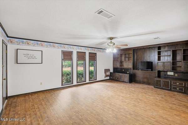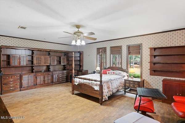 Spacious One-Owner Home on Two Lots! This wonderful home has been lovingly cared for by its original owner and offers a great split floor plan that gives everyone their own space. Two bedrooms on one side share a handy Jack-and-Jill bath, while the primary suite and a fourth bedroom-each with its own private bath-are on the opposite side of the home. All of the bedrooms are large with plenty of closet space, and there's storage everywhere you turn, including built-ins that make life even easier. There's no carpet anywhere-just durable laminate flooring throughout, perfect for easy upkeep. A welcoming foyer with two closets greets you as you walk in. The family room features a cozy wood-burning fireplace and plenty of room for big, comfortable furniture. The kitchen is nice and spacious, with an island, breakfast bar, and dining area, making it the heart of the home. A former patio was enclosed to create a flexible office space and a wet bar ''party'' area that includes an indoor grill and a vintage ice maker-a fun and unexpected spot for entertaining! Out back, a huge screened-in patio with ceiling fans is perfect for relaxing and watching all the fun in the giant backyard. The roof is only two years old, and the HVAC systems are just three years old, so you can move in with peace of mind. Originally a three-car garage, one bay was converted into a huge storage room, giving you even more space to work with. Sitting on two fenced lots, this home has plenty of room inside and out. It's full of character and ready for you to come in, add your modern touches, and make it your own! Call your REALTOR(R) today to set up a private showing!