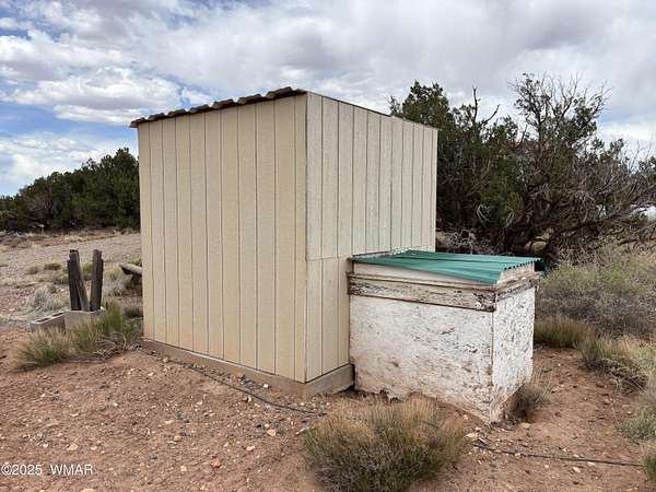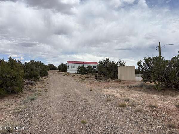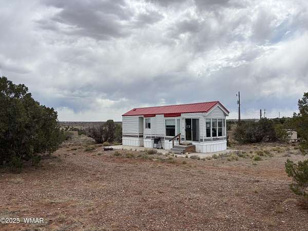 Charming 1 Bed, 1 Bath Tiny Home on 20 Peaceful Desert Acres! This adorable manufactured home with a cheerful red roof sits on 20 spacious desert acres, offering privacy, stunning views, and a rockhound's dream with petrified wood scattered throughout. Surrounded by mature juniper trees, it's cozy and needs just a bit of work to make it truly shine. The property is serviced by APS electric and has its own Private Well providing ample fresh water-no hauling needed! Located less than 10 minutes from town, you'll enjoy the perfect blend of seclusion and convenience, with easy access to shopping, dining, and other amenities. A perfect retreat or homestead waiting for your personal touch!