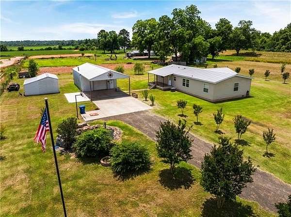 If you are looking for rural living with space for your small farm then this is your home! This is a 2009 doublewide home with 4 BR | 2 BA located on 4.4 acres of land. This home has been well taken care of throughout. As soon as you walk in there is a huge laundry room/mud room that goes into the kitchen and dining room. It has a split floor plan with large living room in the center. The land actually goes across the road almost an acre all the way to the bayou. It offers a 24 X 40 shop with 12 FT tall ceilings, a loft, electricity, AC compressor remains, welding receptacle, wired for 220 & a 110, and well insulated. There is another storage shed with AC and heat to the left of the shop on a slab for storage that has a lean-to. The big red barn has a camper receptacle and its own electric meter. Small garden shed on a slab with water and electricity, as well. New HVAC 2020, ROOF 2020 (Metal), Stove 2021, and Dishwasher 2021. Bonus: washer/dryer will remain.