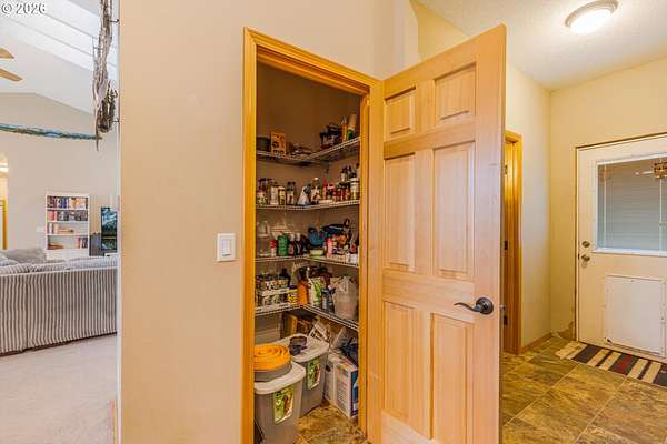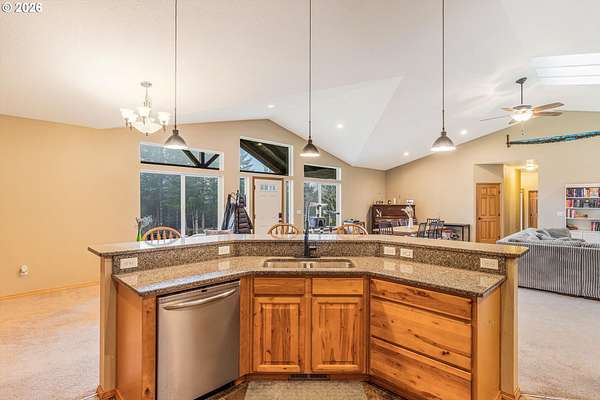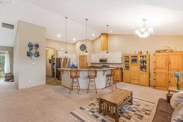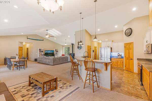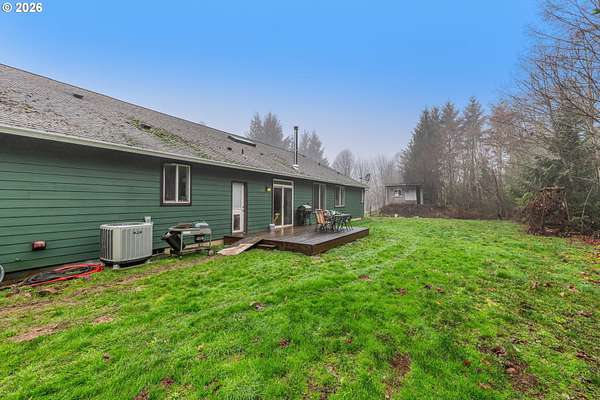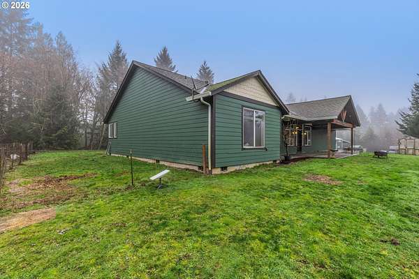 2014 custom built 2650 sq ft 3 bed 2-1/2 single level home with oversized 2 car attached garage on 17.2 acres. Warm yourself by the wood stove in the vaulted living room and watch the wildlife pass through the area out the large windows. Huge kitchen with sink in island to improve workflow and allow socializing, two large pantries, stainless steel appliances and vaulted ceiling. Primary bedroom with ensuite bathroom plumbed and ready for new custom tub/shower, large walk in closet. second bedroom has walk-in closet. Vaulted oversized covered front porch, apple trees, plum trees, blackberries, wild cherries, chicken coop, man made pond with ducks, large area for camping, cross fencing, pasture, marketable timber (part of property is in deferral), compacted driveway can handle heavy vehicles, well with holding tank that is regularly inspected, 6in fire main, Detached 24x40 shop-insulated with separate 220amp service and concrete floor. RV parking pad with electric hook up next to shop. New exterior paint in 2024