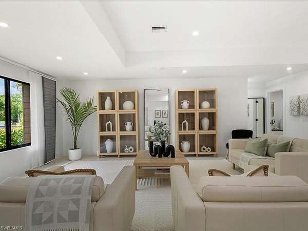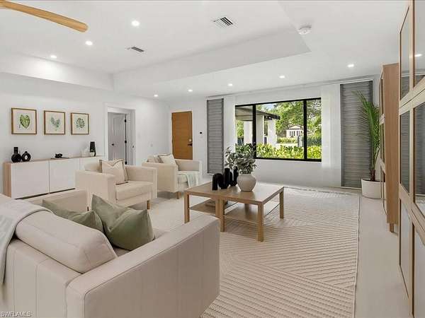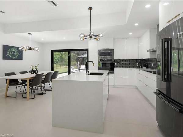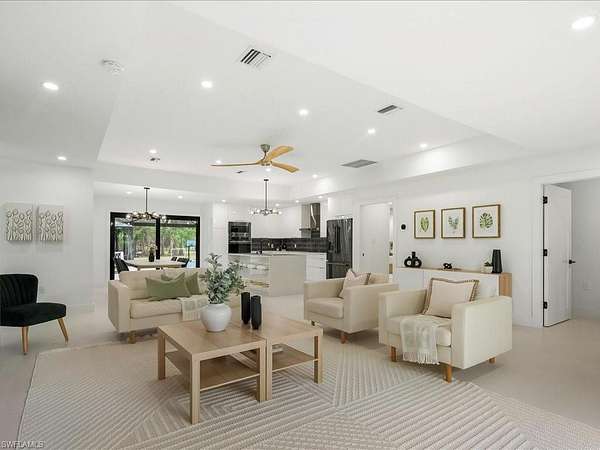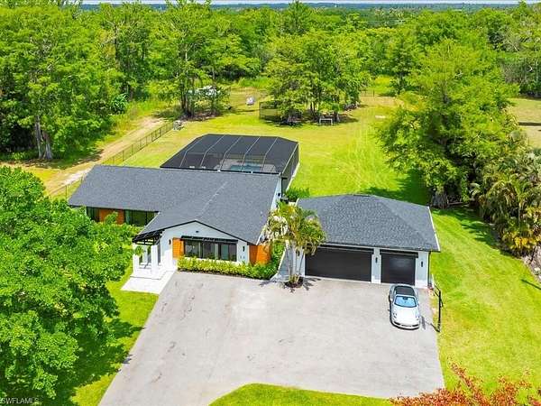 Modern luxe meets casual elegance in this sprawling residence featuring four bedrooms and two bathrooms in more than 2,400 square feet. Located in Logan Woods, this beautiful home boasts more than 2.8 acres and was fully remodeled in 2023 to create a practically brand new house with new A/C, new water heater, new roof (2022), new hurricane impact windows and doors, energy efficient spray foam insulation, new electric panels, new kitchen, new bathrooms, new well, new septic field (2024), whole home reverse osmosis system, new flooring, Lutron lighting, all new appliances, and much more. A 2,500-square-foot patio encloses a new saltwater pool with no-see-um screens, and plenty of space to enjoy the Florida sun. A detached three-car-garage will store your vehicles, as well as all of the toys needed to play in your spacious fully fenced yard featuring a fire pit and beautiful natural landscape. Don't miss your opportunity to live a carefree lifestyle with all of the luxury and none of the restrictions in this gorgeous estate home.