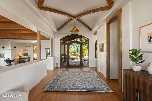 - Beamed Ceilings, Built-In Features, Entrance Foyer, High Ceilings, Kitchen Island, Vaulted Ceiling(s), Walk-In Closet(s)