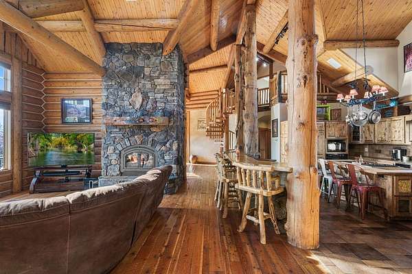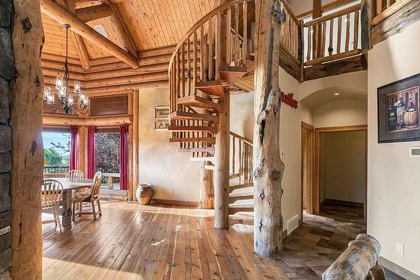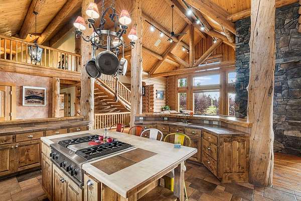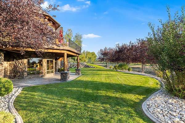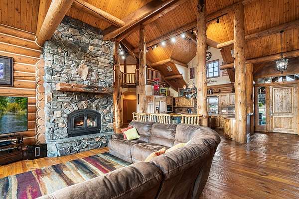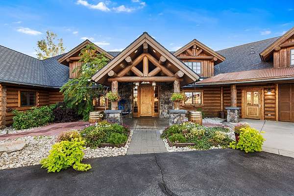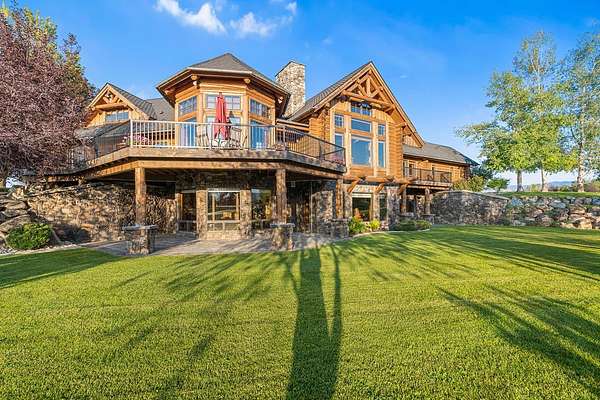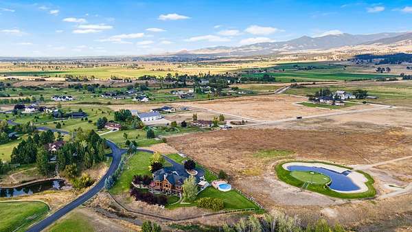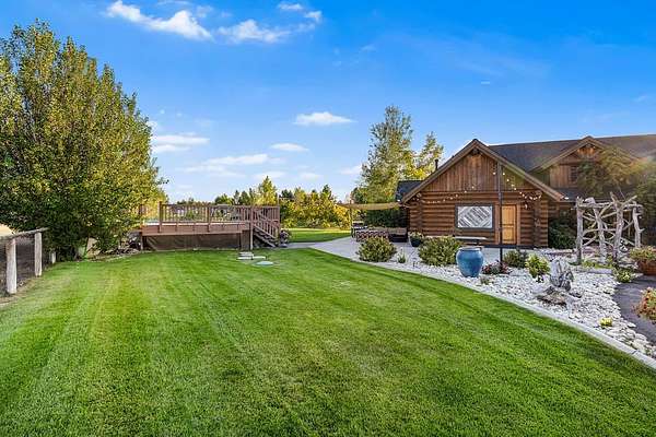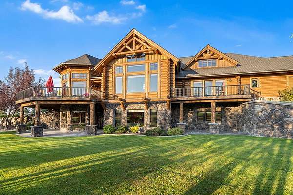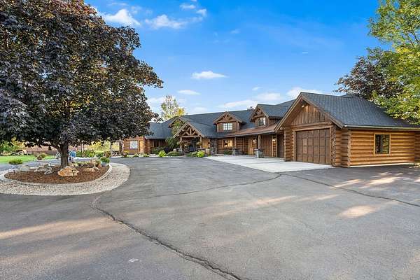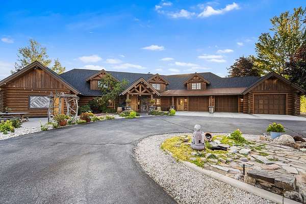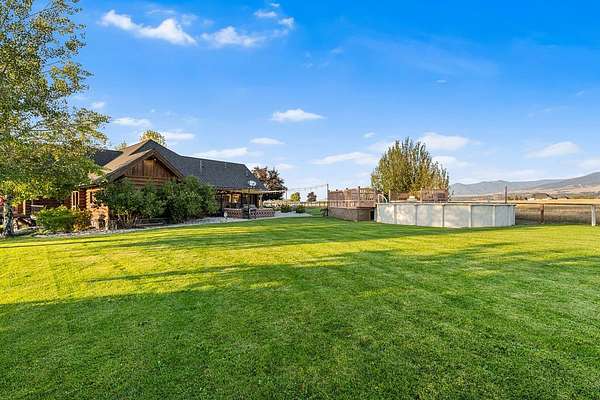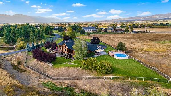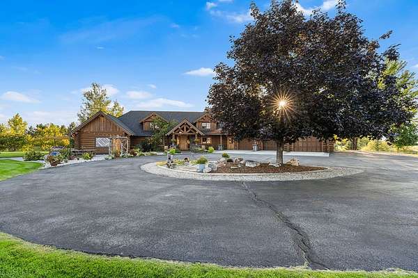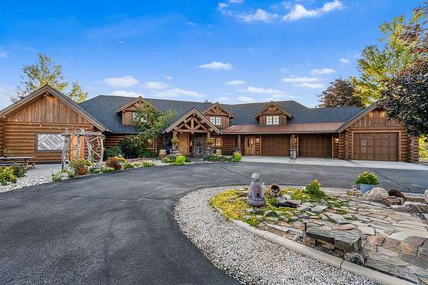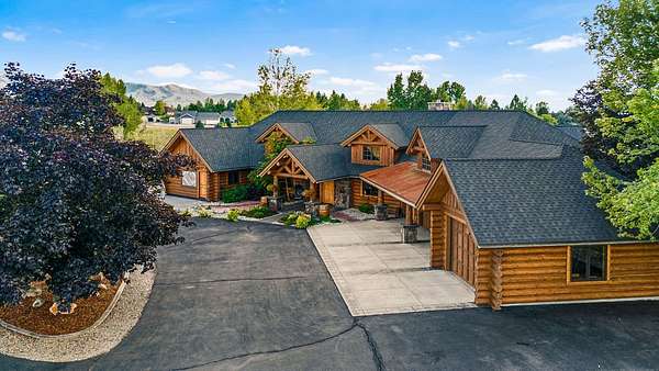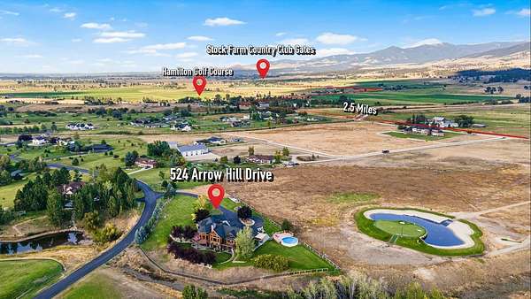 This impressive 6,950 sq ft custom log home rests on 2.22 private acres in the heart of the Bitterroot Valley, where expansive 360 degree views take in both the Bitterroot and Sapphire Mountain ranges. Built in 2003, the residence showcases classic Montana craftsmanship with soaring timbers, warm natural finishes, and a layout designed for comfort, functionality, and entertaining. Inside, you'll find five spacious bedrooms and six bathrooms, along with an open floor plan that's perfect for everyday living or hosting. The home also includes a custom remodeled suite (2014) with a private entrance, spa-inspired bathroom featuring heated tile floors, a walk-in rain shower, and a soaking jet tub that is also a walk-in tub. This suite also has its own kitchen with granite countertops, stainless appliances, and a sliding door to a private outdoor sitting area, ideal for guests or multi-generational living. The main living spaces feature abundant natural light, vaulted ceilings, and a welcoming open kitchen with tile countertops. With two full kitchens, the home provides flexibility for entertaining or extended stays, while hardwood and tile floors tie together the home's rustic yet refined design. A theater room and built-in sound system add to the entertainment appeal. The grounds are professionally landscaped to create a private setting with plenty of space to relax and enjoy. An above-ground pool with an expansive deck makes for an inviting summer gathering spot, while water rights from the historic Daly Ditch ensure the grounds remain well-kept and green. A large 1,260 sq ft attached garage provides plenty of storage for vehicles and gear. The location offers both privacy and convenience, just 10 minutes from downtown Hamilton and 15 minutes from the Stock Farm Club, one of Montana's premiere golf courses. At 524 Arrow Hill Drive, you'll find the ideal Montana lifestyle with easy access to recreation, dining, and everyday amenities.
