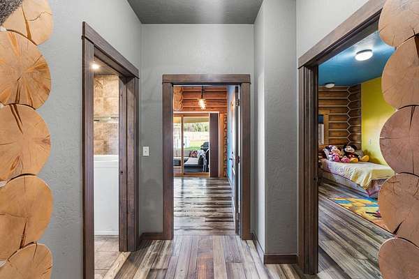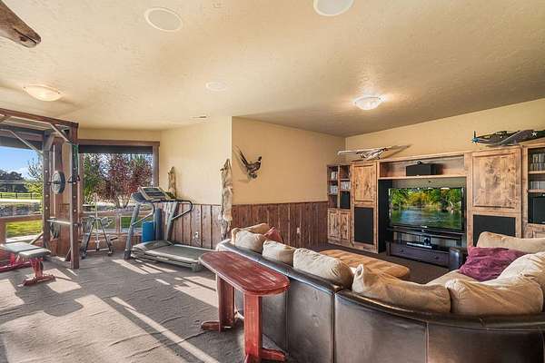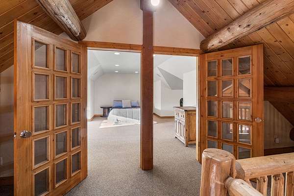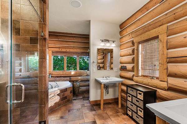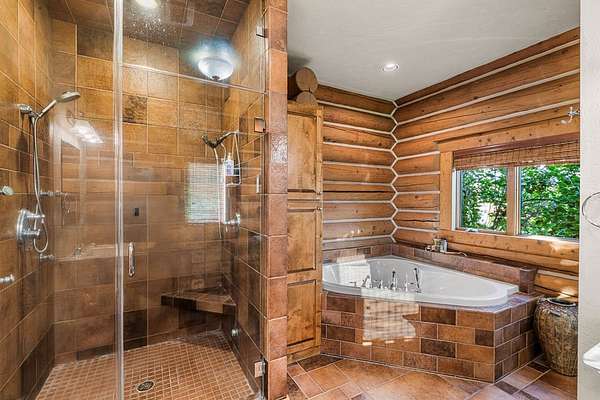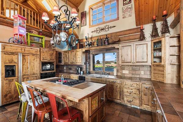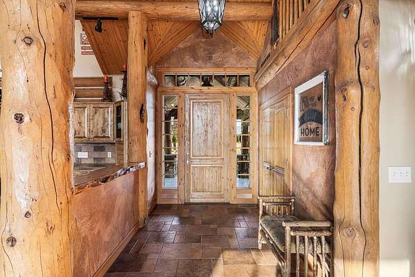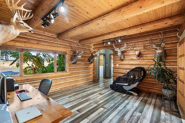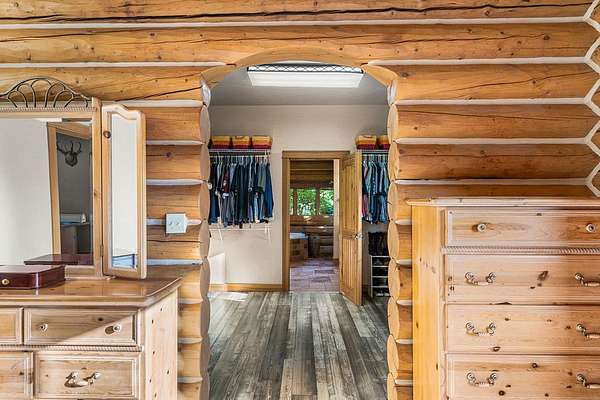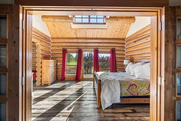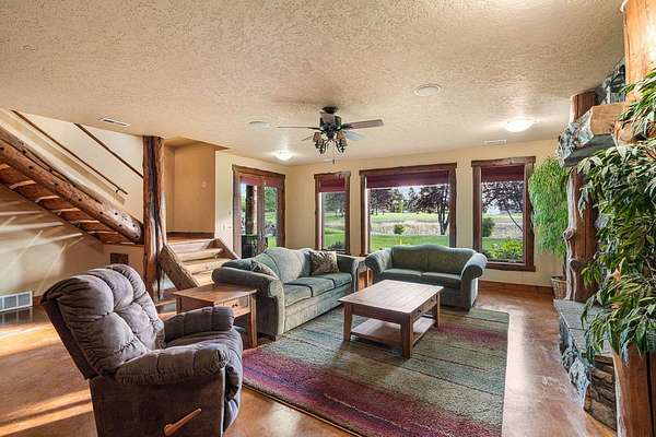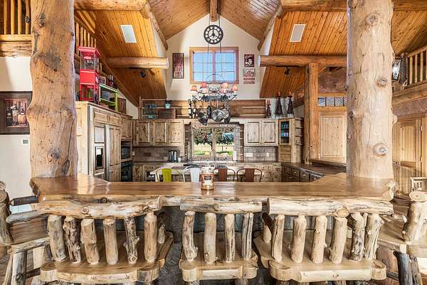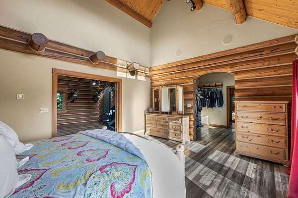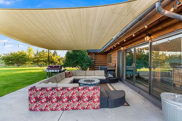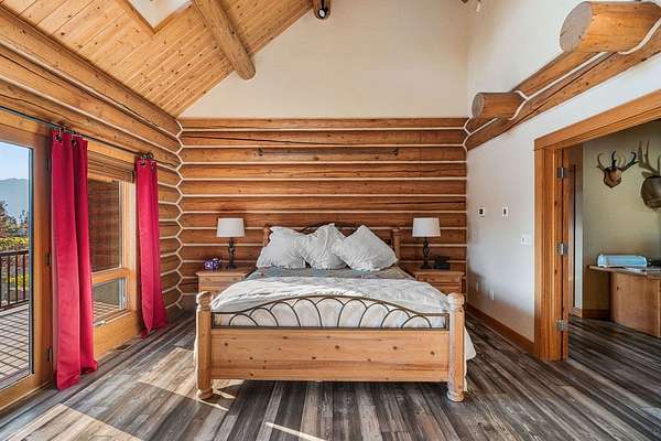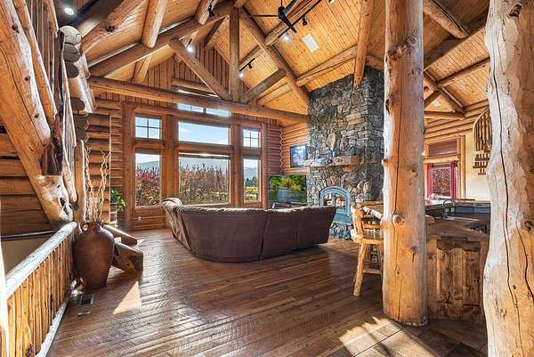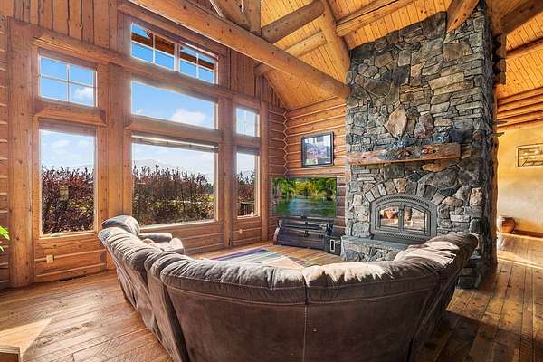 This impressive 6,950 sq ft custom log home rests on 2.22 private acres in the heart of the Bitterroot Valley, where expansive 360 degree views take in both the Bitterroot and Sapphire Mountain ranges. Built in 2003, the residence showcases classic Montana craftsmanship with soaring timbers, warm natural finishes, and a layout designed for comfort, functionality, and entertaining. Inside, you'll find five spacious bedrooms and six bathrooms, along with an open floor plan that's perfect for everyday living or hosting. The home also includes a custom remodeled suite (2014) with a private entrance, spa-inspired bathroom featuring heated tile floors, a walk-in rain shower, and a soaking jet tub that is also a walk-in tub. This suite also has its own kitchen with granite countertops, stainless appliances, and a sliding door to a private outdoor sitting area, ideal for guests or multi-generational living. The main living spaces feature abundant natural light, vaulted ceilings, and a welcoming open kitchen with tile countertops. With two full kitchens, the home provides flexibility for entertaining or extended stays, while hardwood and tile floors tie together the home's rustic yet refined design. A theater room and built-in sound system add to the entertainment appeal. The grounds are professionally landscaped to create a private setting with plenty of space to relax and enjoy. An above-ground pool with an expansive deck makes for an inviting summer gathering spot, while water rights from the historic Daly Ditch ensure the grounds remain well-kept and green. A large 1,260 sq ft attached garage provides plenty of storage for vehicles and gear. The location offers both privacy and convenience, just 10 minutes from downtown Hamilton and 15 minutes from the Stock Farm Club, one of Montana's premiere golf courses. At 524 Arrow Hill Drive, you'll find the ideal Montana lifestyle with easy access to recreation, dining, and everyday amenities.