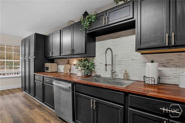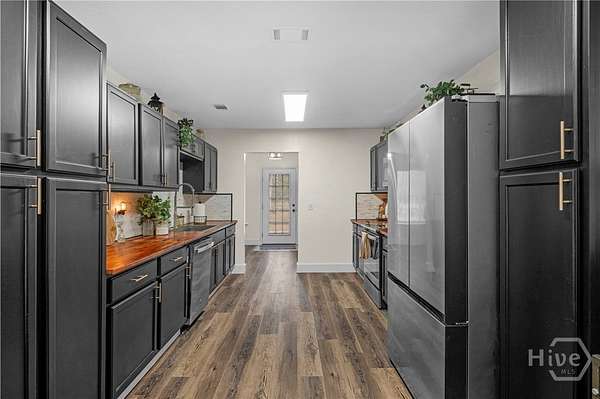 Renovated Retreat on 5.39 Acres - Modern Comfort Meets Rural Freedom! Welcome to this charming 3-bedroom, 2-bath home offering 2,035 square feet of comfortable living space. Fresh interior paint, new trim, new durable LVP flooring, and new carpet throughout create a clean and inviting atmosphere. The heart of this home is the stunning renovated kitchen, featuring ample cabinet space, butcher block countertops, stainless steel appliances, and a stylish backsplash. The kitchen opens to a spacious living room, while the adjoining breakfast area leads to a large family room ideal for everyday living and entertaining! Primary bedroom completes the first floor. Two additional bedrooms, a full bath and laundry room conveniently located on the second floor. Outside, the mostly cleared acreage offers endless possibilities!! Whether you're envisioning a homestead lifestyle, a space for four-wheeling and dirt bikes, or simply enjoying peace and privacy on the extended deck, this property delivers unmatched versatility. Just 15 minutes to Fort Stewart, don't miss this rare opportunity!!