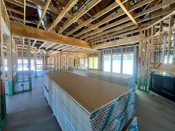 Estimated May 2026 completion! Ask us about our Trade In Trade Up program, we can buy your home! Approach the grandeur of the home through a covered porch, setting the stage for the elegance that lies within. Enter through the foyer, to the right, a versatile flex room awaits which is perfect for a cozy home office or creative space. To the left of the foyer, discover three traditional bedrooms, each accompanied by its own walk in closet and a shared full bath providing comfort and privacy for family or guests. The journey continues into the heart of the home, revealing a sprawling family room and a designer kitchen with a large island, which is an entertainer's dream. For added convenience, a game room, flex room is tucked away in the back left. On the opposite side of this ranch style home, the owner's suite beckons with a spa-like bathroom and an expansive closet, creating a private retreat that you'll never want to leave. Next to the three car garage, a mud bench and laundry room enhance practicality, while a sizable covered back patio invites outdoor living and relaxation. Located on a homesite over 1 acre, this home includes split secondary bedrooms, an open concept, with a large game room to enjoy. Includes an open dining space, and an additional study-flex room! Private 1.9-acre treed homesite with no back neighbors in a beautifully serene community. Open floor concept and light filled interior for family living, included spacious game room to host all game nights. There is irrigation in sodded areas along with a drip system under flowerbeds. This homesite boasts a spacious yard with beautiful mature trees for natural privacy and large covered patio to enjoy the scenery. MASONRY FIREPLACE, COVERED PATIO, FULL FOAM INSULATION, ENERGY EFFICIENT BUILDER!