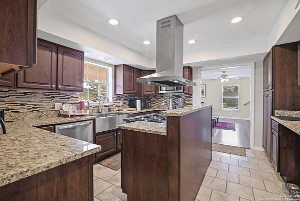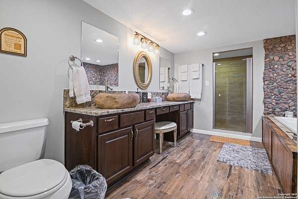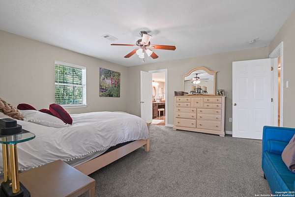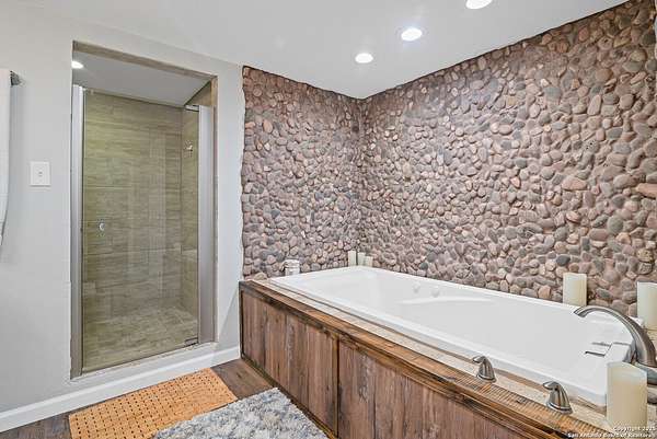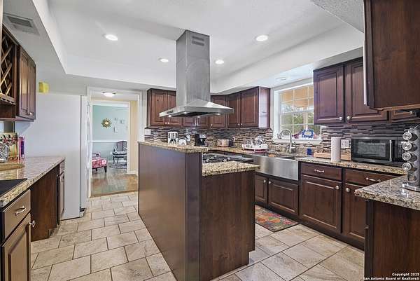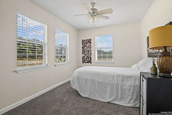 Tucked away in the peaceful Texas Hill Country just outside Blanco, this welcoming 5 Acre Texas Country home in Rust Ranches blends comfort, privacy, seclusion, space, and country charm. The owner calls it the "The Sunshine House" and you will see why and it will not be the fact a sunrise mural is painted on the north side of the house either! It's the kind of place that feels good the moment you walk in, bright, open, and full of natural light. The kitchen is thoughtfully designed, ideal for cooking and gathering with family and friends along with a very large oversized gas range to really get that ranch cooking going strong! With two spacious living areas, there's plenty of room to relax, entertain, or simply unwind after a long day. Two of the bedrooms even feature their own cozy sitting areas perfect for reading, working, or just having a little extra space to call your own. Did we mention the owner's retreat has it's own kind of spa like feel with river stone walls surrounding the massage jetted soaking tub and an enormous large walk in shower? You will feel like you're pampered at home and never want to leave! Step outside to enjoy quiet mornings with a cup of coffee on the porch or evenings under the big Texas sky. Heck this property comes boasting a VERY large gameroom upstairs perfect for entertaining while separating the downstairs and upstairs spaces. Oh did we mention, one room is like a little cozy library room with a handpainted country mural on the wall and a full set up black lights behind it to REALLY make it pop? You will have to see this for yourself! Set on a beautiful stretch of land fully set with a 484 sq ft barn along with a 480 sq.ft. separate storage room; this property has SOO many directions you can take this with and really make it your own private country retreat! The gated entry with code and private drive deep into the property keeping the house secluded entirely from the main road is just what anyone wanting ultimate privacy will be attracted to! If you want to make it your own, this home offers the perfect balance of privacy and convenience close to local shops, wineries, and everything the Hill Country has to offer with the town of Blanco only a 8 min drive away.