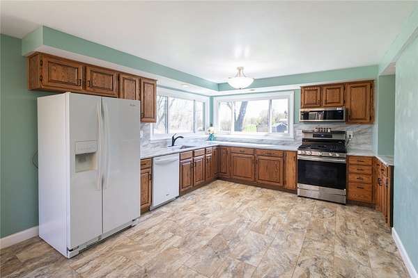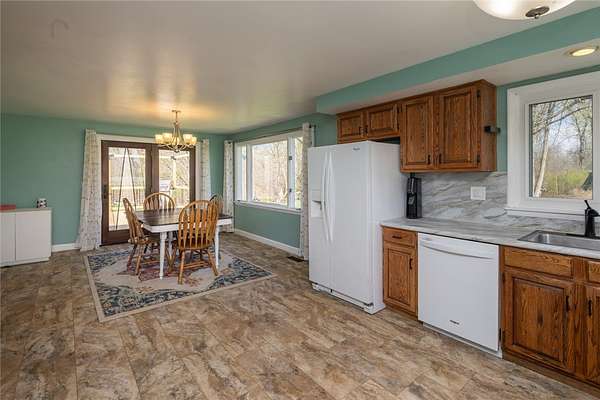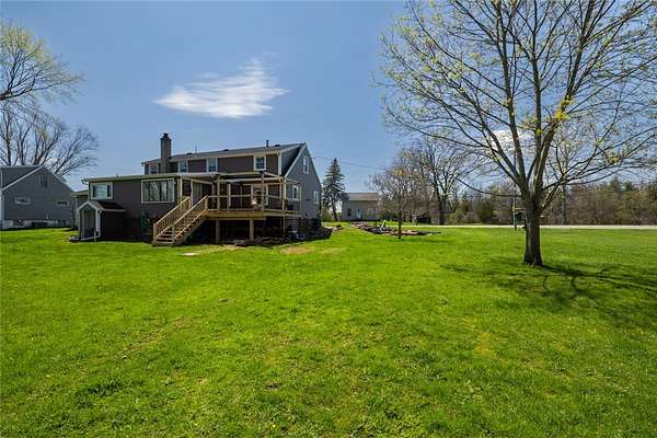 Welcome to this charming 4-bedroom, 1.5-bath Cape Cod home nestled on 3.20 peaceful acres in the Town of Riga. Whether you're dreaming of open space, room to grow, or a private retreat you can truly call your own, this property delivers. The generous, expansive, partially wooded lot offers endless possibilities - gardening, entertaining, or simply enjoying the beauty of your own backyard. Inside, the cozy gas fireplace (2017) sets the perfect mood for cool Western New York evenings in the large great room. The main level features a flex space, currently used as a gym, 1st floor bedroom, upgraded full bath w/ built in linen closet, and a HUGE eat-in country kitchen. You'll find the other 3 spacious bedrooms, storage closets, and 1/2 bath on the upper level. Recent updates bring both style and peace of mind: new siding (2014) keeps the exterior looking sharp and well-protected, while the glass block windows (2020) add a modern touch with added natural light. The walkout basement makes projects a breeze and offers lots of storage. Step outside onto the beautiful wood deck (2026)-ideal for morning coffee, summer gatherings, or watching the seasons change. Nature lovers will delight in the abundant wildlife that calls this property home, with foxes, deer, and other animals known to roam the grounds - a serene, living backdrop that makes every day feel like an escape. You'll love the location with the close proximity to the Village of Churchville, parks, and the expressway. You're approximately 25 minutes to the University of Rochester, about 20 minutes to Frederick Douglass Greater Rochester International Airport, and roughly 25 minutes to the heart of Downtown Rochester - close enough to enjoy everything the city has to offer, yet far enough to come home to true tranquility. Don't miss this opportunity to own a piece of Monroe County's countryside with all the updates already done. Schedule your private showing today! Delayed Negotiations until Tuesday, April 28th at 12:00 PM.