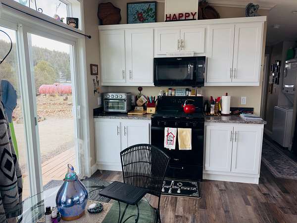 The one-bedroom, one-bath tiny home is simple, solid, and efficient. A well and septic are already in place, along with a solar system that takes full advantage of the Colorado sunshine. A 240 sqft storage shed that has insulation and laminate flooring as well as an additional shed that stores the solar batteries and gives you room for tools, gear, and whatever toys you bring to the mountains. There is a 500 gallon propane tank and a Generac generator that is installed on the property.