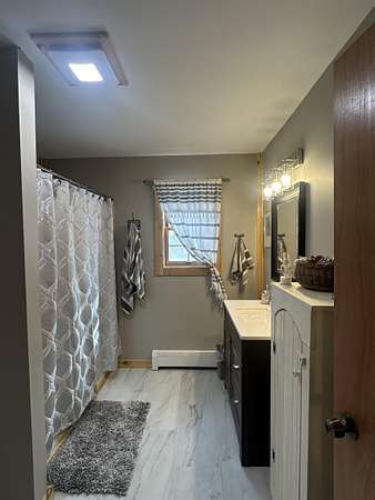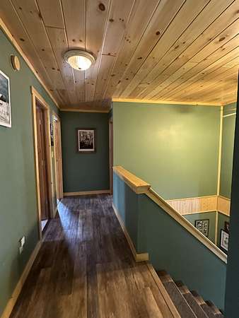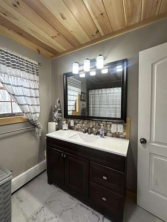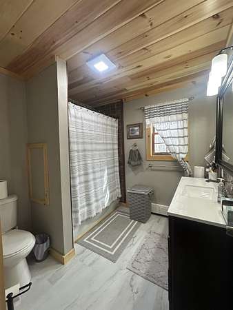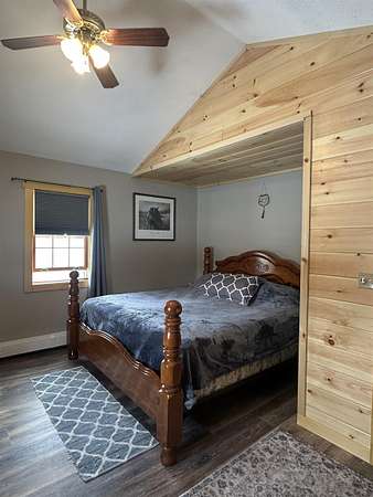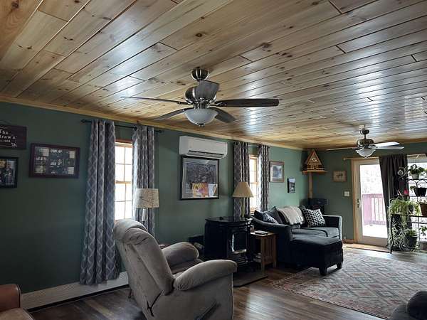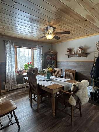 This beautifully remodeled home offers 1,872 square feet of living space, featuring four bedrooms and two full bathrooms. The recent updates showcase tasteful finishes throughout. Upon entering, you're greeted by a spacious kitchen and open dining area. The kitchen boasts stunning painted cabinets, open shelving, and a tile backsplash that reaches all the way to the ceiling. The home is adorned with wood-look luxury vinyl plank flooring and tongue and groove pine ceilings, creating a warm and inviting atmosphere. Large windows throughout the house bathe every room in natural sunlight. The double living room seamlessly extends onto a sizable patio at the back of the home, further enhancing the sense of brightness and airiness. Downstairs, you'll find a large, full bathroom. The upstairs level includes three generously sized bedrooms, another large, full bathroom, and a smaller bedroom that can serve as an office or guest space. Nestled on a 1.8-acre lot along the St. Regis River, the property offers approximately 100 feet of river frontage. This idyllic setting is ideal for recreational activities such as canoeing, kayaking, fishing, or simply enjoying the tranquil sounds of the river and the beauty of the natural surroundings. In 2025, the sellers installed a new boiler, ensuring efficient heating for the home. The basement is spacious and dry, providing the opportunity for additional flex space or a game area. To experience all this home has to offer, contact your agent today to schedule a showing.