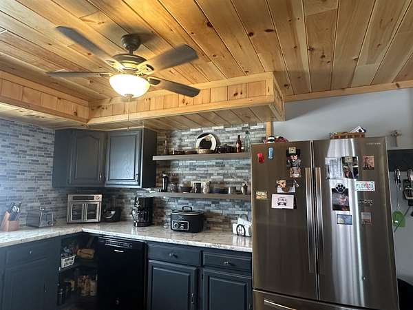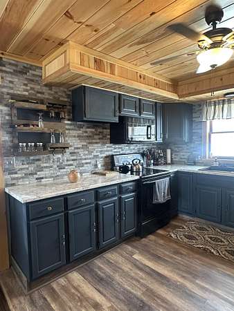 - Ceiling Fan(s), Modern Kitchen, Open Floor Plan, Window Treatments