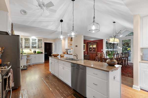 A handsome 2-car detached garage includes extra storage. On the bottom level, a 1,468-SF income-producing apartment with full kitchen, living and dining room, bedroom, bath and massive storage gives rare flexibility for revenue, guests, or staff.
