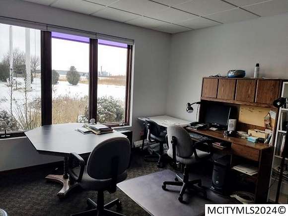 Spatial Designs Office Park for Sale or Lease. A phenomenal Office Building with very unique and upscale features. This office complex is virtually self sustaining on Energy Usage. The Energy consumption is over 99% self produced. 3055 sq ft office building. Unique features include Solar Panel Energy System, Wind Turbine Energy System, Boardroom/Tornado Rated Shelter Room, rated to 250 MPH winds, with 8" reinforced walls/12" concrete roof. Building has all LED lighting, zoned In-floor heat, energy efficient windows/doors, super insulated. Large reception area, huge executive office/meeting room, 2 additional spacious offices and the conference/ board room. Bonus-2 private entrance rentable single room office spaces. One stall garage. With 2.17 Acres, room for future expansion and additional buildings. A First Class office complex on Mason City's West Side. Featured in national magazines, for its innovative features. Lease Terms- $8.50/sq.ft. lease/$5.00 NNN CAM. Total $13.50/sq.ft.