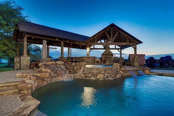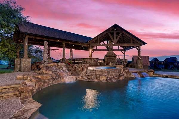 Welcome to your private retreat! This stunning 4 bedroom, 4 bathroom estate sits on approximately 32 acres of serene countryside. Downstairs the inviting interior features a dedicated office space with beautiful built-in shelving, a cozy fireplace in the living room, and a generously sized primary suite with a luxurious en suite bathroom. Upstairs, a versitle flex space opens to a balcony - a perfect space to enjoy the sunset views and manicured landscaping. Perfectly designed for both relaxation and entertaining, the property boasts a beach-entry pool with an attached spa and tranquil waterfall. Entertain in style under the cabana, which features an outdoor grill, a cozy fireplace, and a dining area. This rare property combines luxury, privacy, and comfort-ideal for everyday living or exceptional entertaining. Enjoy ample space for your livestock and fishing pond!